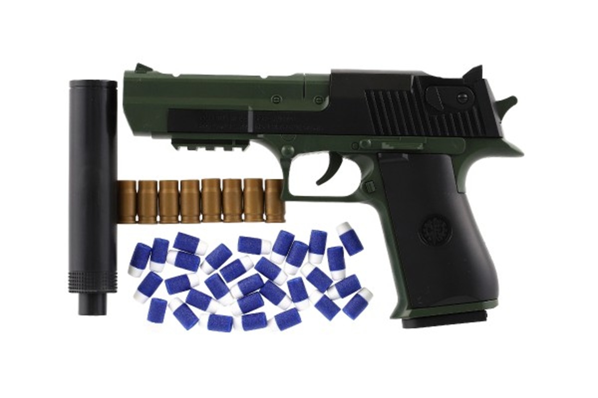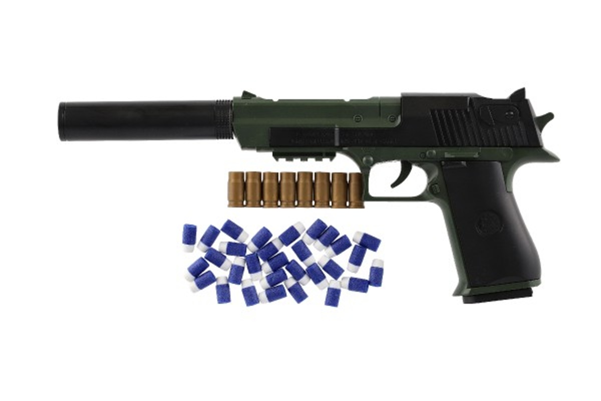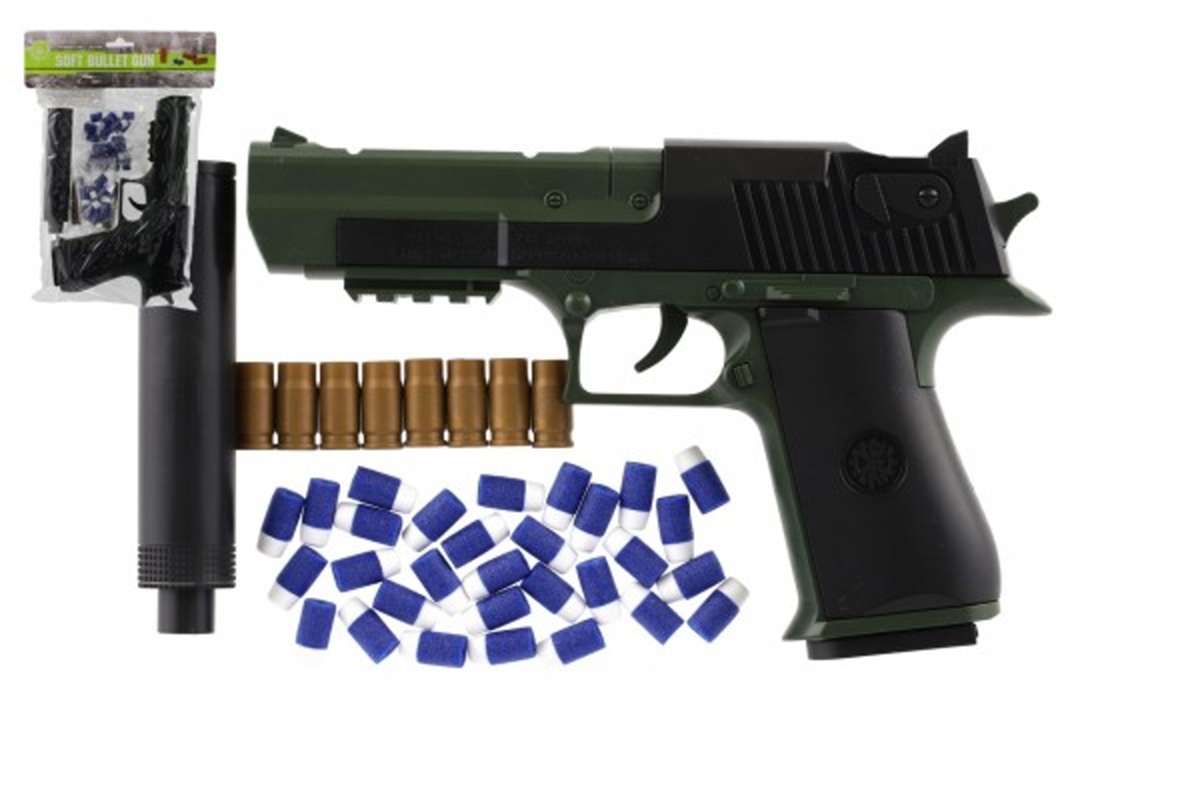 Sada obsahuje pistoli, tlumič a cca 30 ks pěnových nábojů