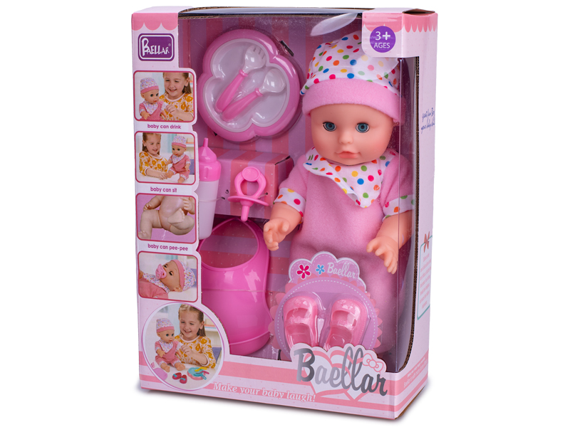 Roztomilé mrkací a čůrající miminko má tvrdé tělíčko. Oblečení a doplňky jsou laděny do růžové barvy.EAN: 8592117411777