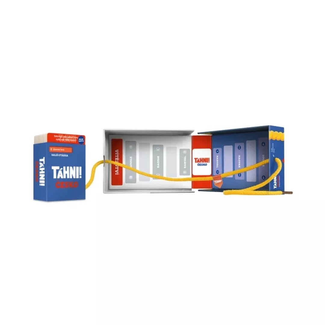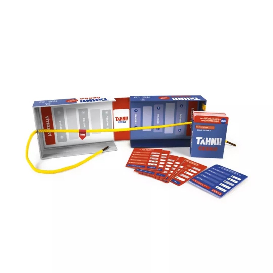 Ve hře Táhni! odpovídají dva týmy na zábavné otázky ANO / NE. V případě, že pouze jeden tým odpoví správně, táhne vlajku ke své straně. S každou další kartou se zvyšuje sázka. Tým, který dotáhne vlajku na konec, vítězí!