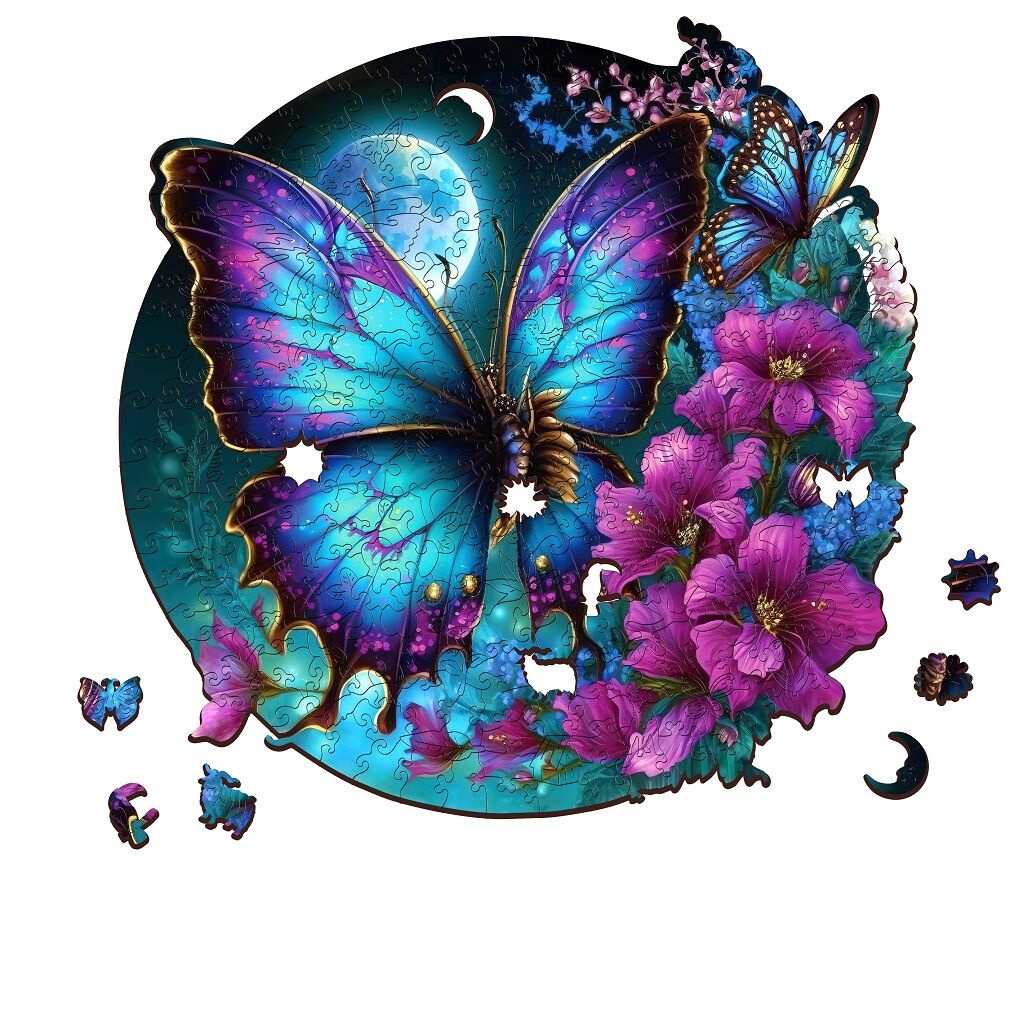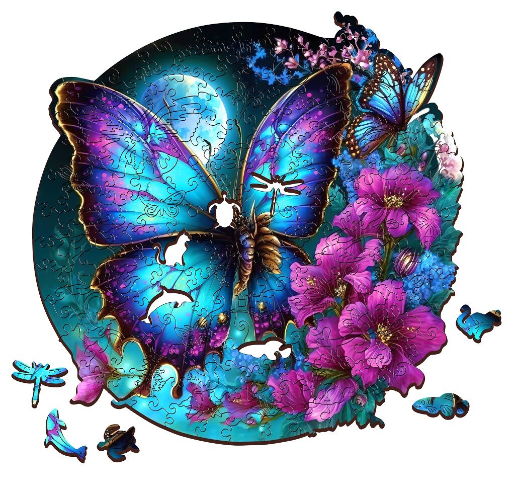 Puzzle s obrázkem motýla je unikátní dřevěné skládací puzzle, které spojuje kvalitní řemeslné zpracování s ekologicky odpovědným přístupem.Puzzle s obrázkem motýla je unikátní dřevěné skládací puzzle, které spojuje kvalitní řemeslné zpracování s ekologicky odpovědným přístupem. Je vyrobeno z 5 mm FSC certifikovaného dřeva, které zaručuje, že při výrobě byly dodrženy nejvyšší standardy ve správě lesů, což přispívá k udržitelnosti a ochraně biodiverzity. Každý z jedinečných 300 dílků skládačky je precizně vyřezán laserem, což zajišťuje dokonalou přesnost a hladkost hran, čímž usnadňuje skládání i manipulaci s dílky.