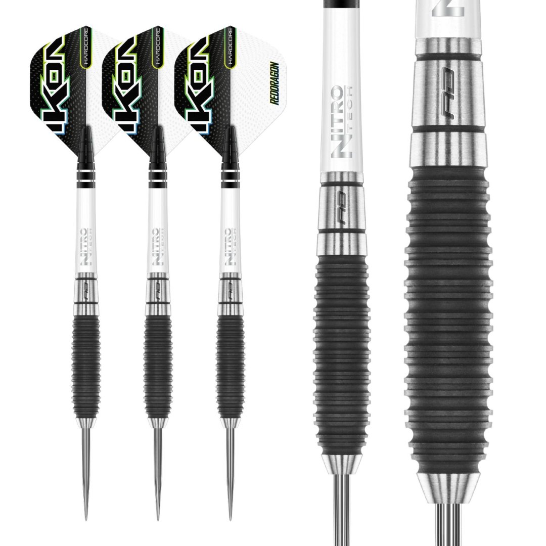 Steelové šipky Red Dragon Ikon jsou wolframové šipky (85% tungsten) s barrely, které jsou po celé délce drážkované a mají šedou povrchovou úpravu. Barrely jsou doplněny násadkami Nitrotech a letkami Hardcore Ikon.