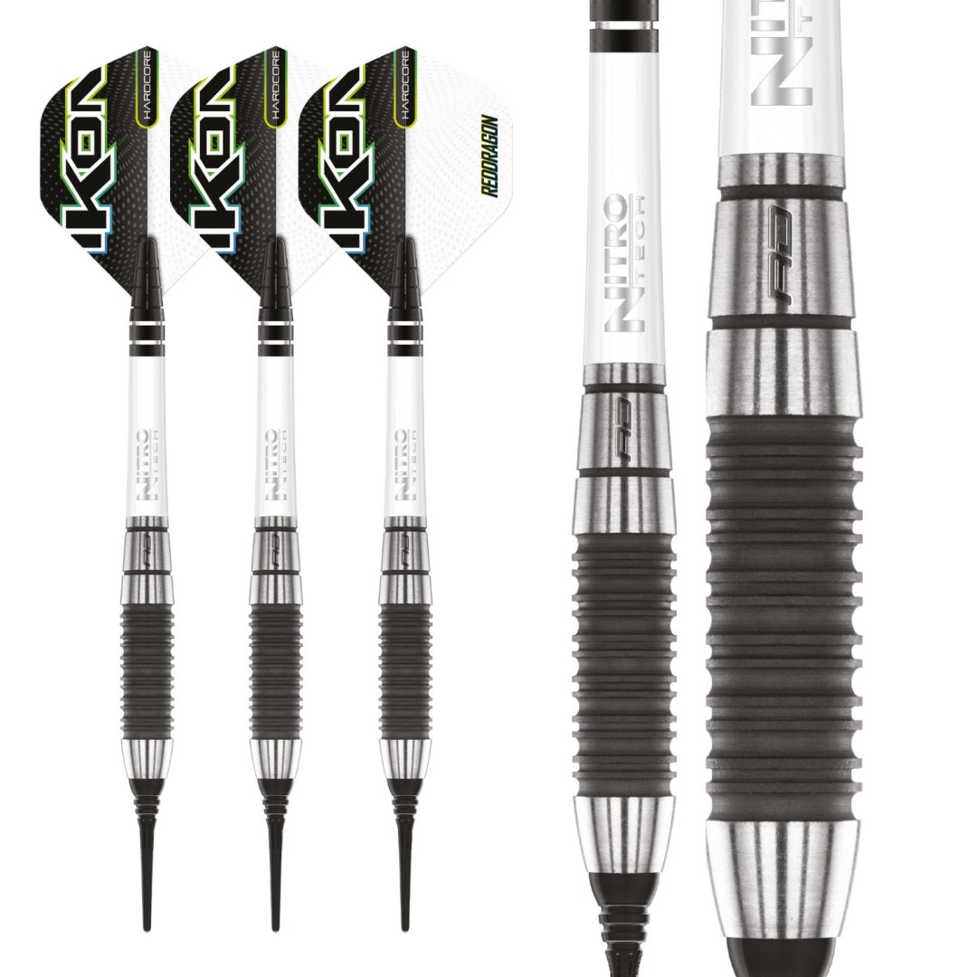 Softové šipky Red Dragon Ikon jsou wolframové šipky (85% tungsten) s barrely, které jsou drážkované a mají šedou povrchovou úpravu. Barrely jsou doplněny násadkami Nitrotech a letkami Hardcore Ikon.