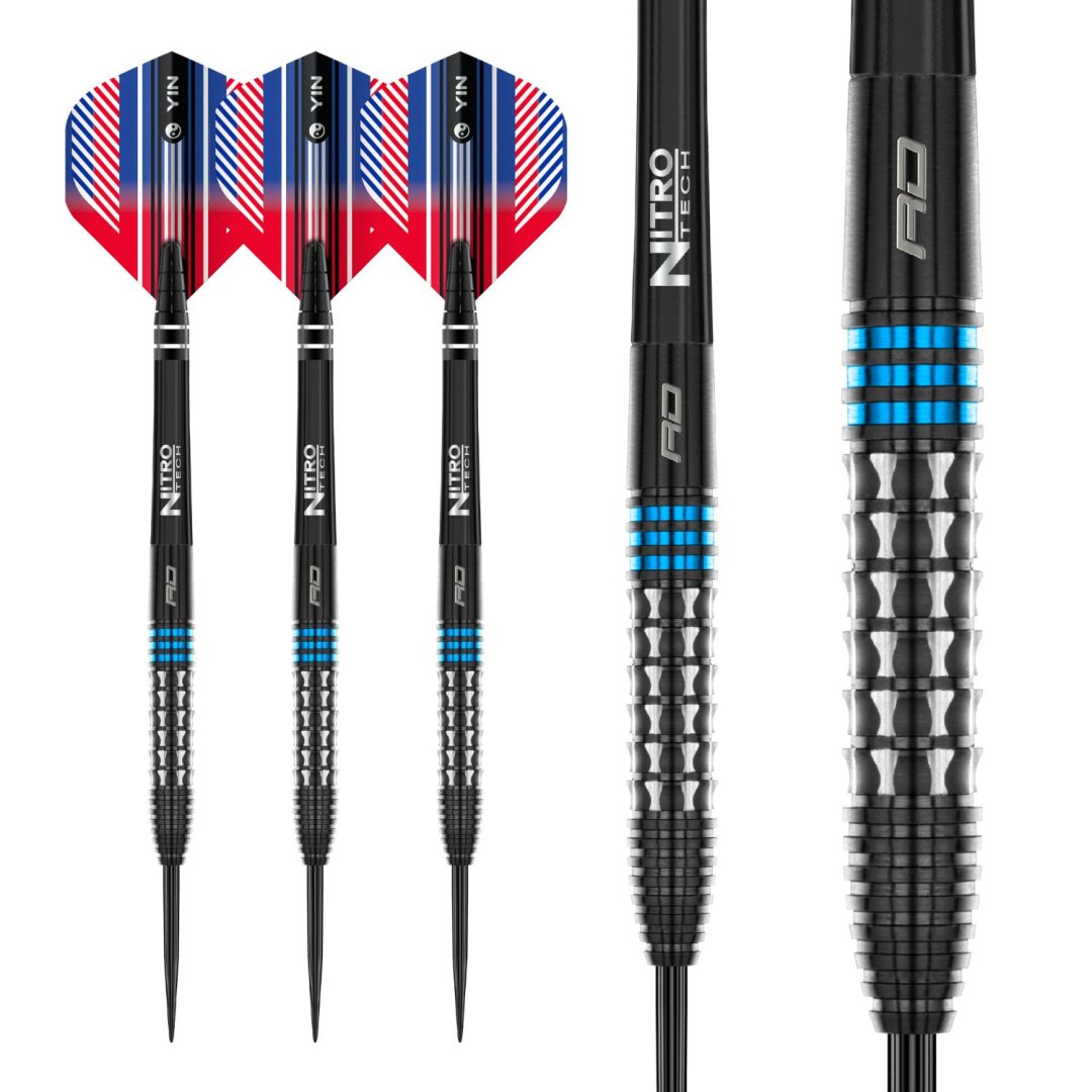 Steelové šipky Red Dragon Vengeance jsou wolframové šipky (90% tungsten) ve sportovním designu. Černé barrely mají drážkování zvýrazněno stříbrnou a modrou barvou, což šipce dodává jedinečný vzhled. Barrely jsou doplněny nylonovými násadkami Nitrotech a letkami Yin Yang.