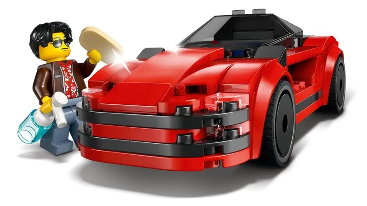 Superauto pro děti od 5 let. Potěšte malého milovníka parádních aut stavebnicí Lego City Červený sporťák.Superauto pro děti od 5 let. Potěšte malého milovníka parádních aut stavebnicí Lego City Červený sporťák. Co najdete v krabici? Součástí je vše, co děti potřebují k sestavení červeného sportovního auta, a minifigurka řidiče. Děti posadí minifigurku řidiče za volant a uloží mobilní telefon a čisticí pomůcky do kufru. Stavebnice s vozidlem obsahuje řadu doplňků pro kreativní hraní včetně telefonu, spreje a houbičky.