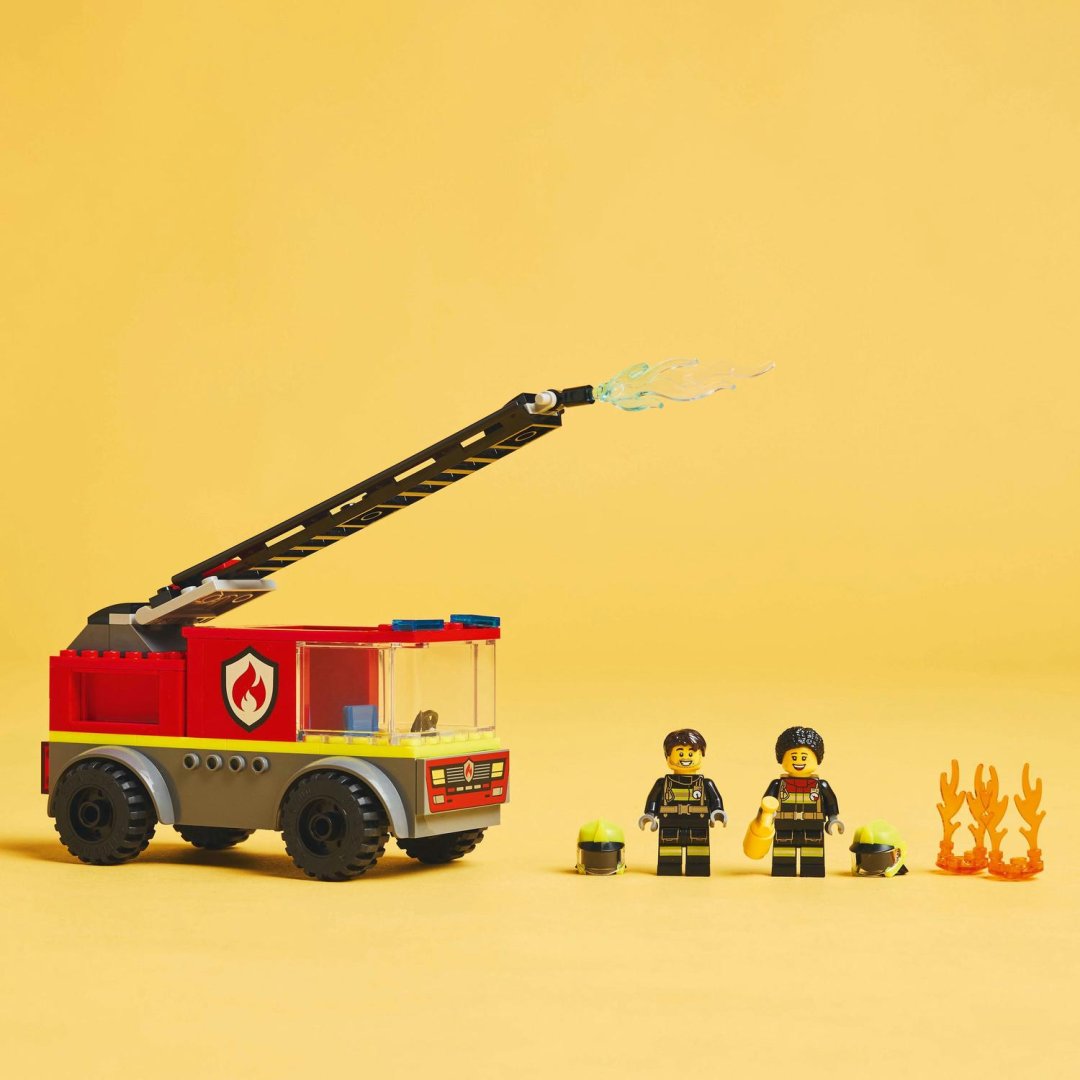Hasičská stavebnice pro děti od 4 let. Představte svému malému hrdinovi všedního dne napínavý svět Lego City se stavebnicí Hasičské auto s žebříkem pro nápadité hraní a vyprávění příběhů.Hasičská stavebnice pro děti od 4 let. Představte svému malému hrdinovi všedního dne napínavý svět Lego City se stavebnicí Hasičské auto s žebříkem pro nápadité hraní a vyprávění příběhů. Co najdete v krabici? Tato stavebnice obsahuje vše, co děti potřebují k sestavení klasického modelu hasičského auta, 2 minifigurky hasičů, 2 plamínky Lego a ruční hasicí přístroj. Model hasičského auta se zábavnými funkcemi pro kreativní hraní. Součástí vozu je kabina řidiče pro 2 osoby, zvedací žebřík a hasicí přístroj pro minifigurky hasičů.