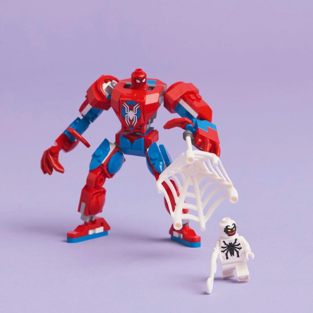 Lego Marvel Spider-Man v robotickém obleku vs. Anti-Venom. Tato stavebnice pro děti obsahuje velkou figurku robotického obleku a dvě minifigurky, se kterými si holky a kluci od 6 let užijí nekonečnou superhrdinskou zábavu.Lego Marvel Spider-Man v robotickém obleku vs. Anti-Venom. Tato stavebnice pro děti obsahuje velkou figurku robotického obleku a dvě minifigurky, se kterými si holky a kluci od 6 let užijí nekonečnou superhrdinskou zábavu. Tato superhrdinská stavebnice obsahuje minifigurky Spider-Mana a Anti-Venoma a doplňky, které podněcují k nápaditému hraní. Robotický oblek Lego Marvel má pohyblivé paže, nohy a prsty, jeho trup lze otevřít a odhalit tak kokpit, do kterého se vejde minifigurka Spider-Mana. Děti můžou chytit minifigurku Anti-Venoma pomocí velké pružné pavučiny, kterou lze vložit do ruky robotického obleku.
