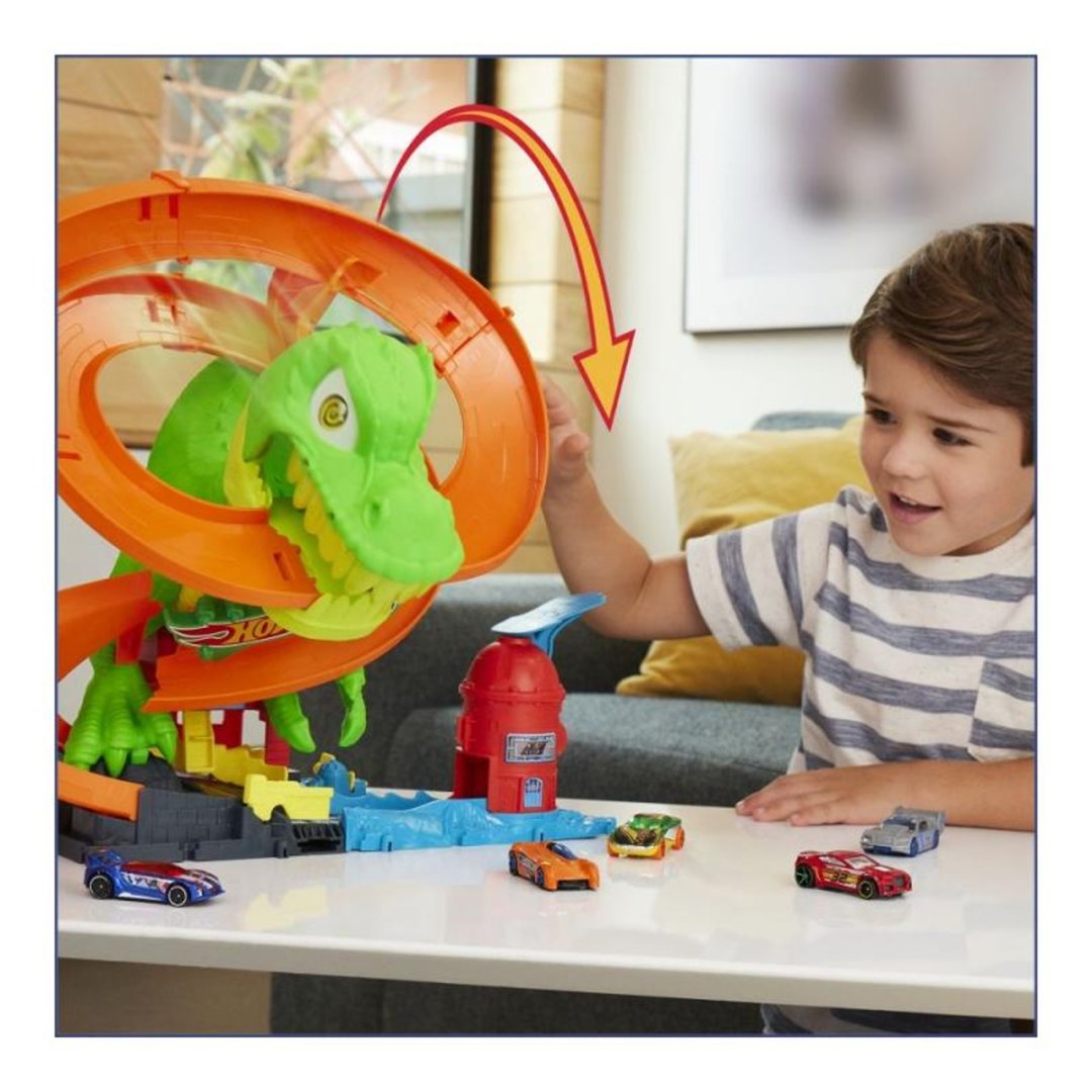 Závoďte o záchranu Hot Wheels města před nebezpečným T-Rexem, který chce sežrat všechna auta!EAN: 194735264186