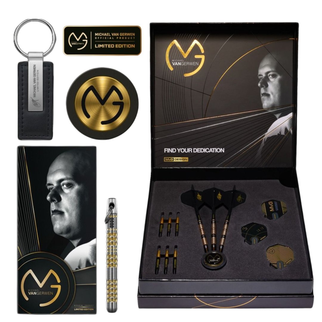 Michael van Gerwen 5 Year Anniversary Limited Edition Gift Box je sběratelským snem! Tato oslavná sada z limitované edice se dodává v elegantním a luxusním dárkovém boxu.