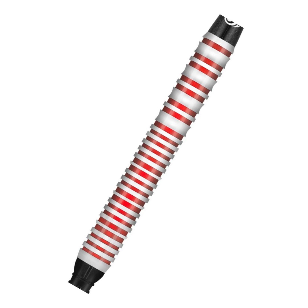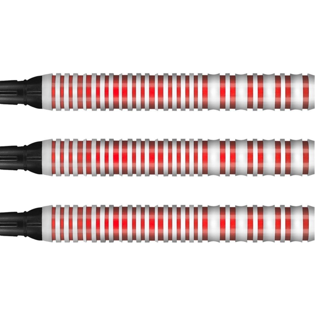 Softové šipky Shot Michael Smith Game Day jsou wolframové šipky (90% tungsten) s barrely, které mají červené drážky.