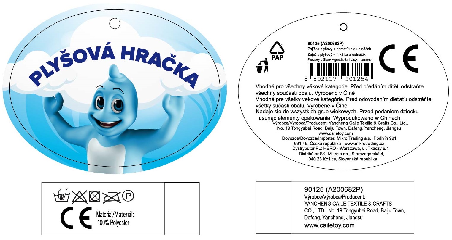 Sedící plyšový zajíček s chrastítkem a usínáčkem v košíku. Celá sada je v růžovém provedení.EAN: 8592117901254