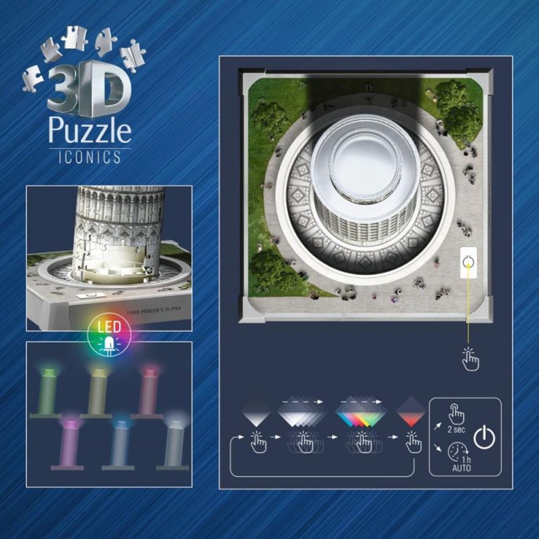 Ravensburger 3D Puzzle - Iconics: Šikmá věž v Pise (Noční edice) - 231 dílků