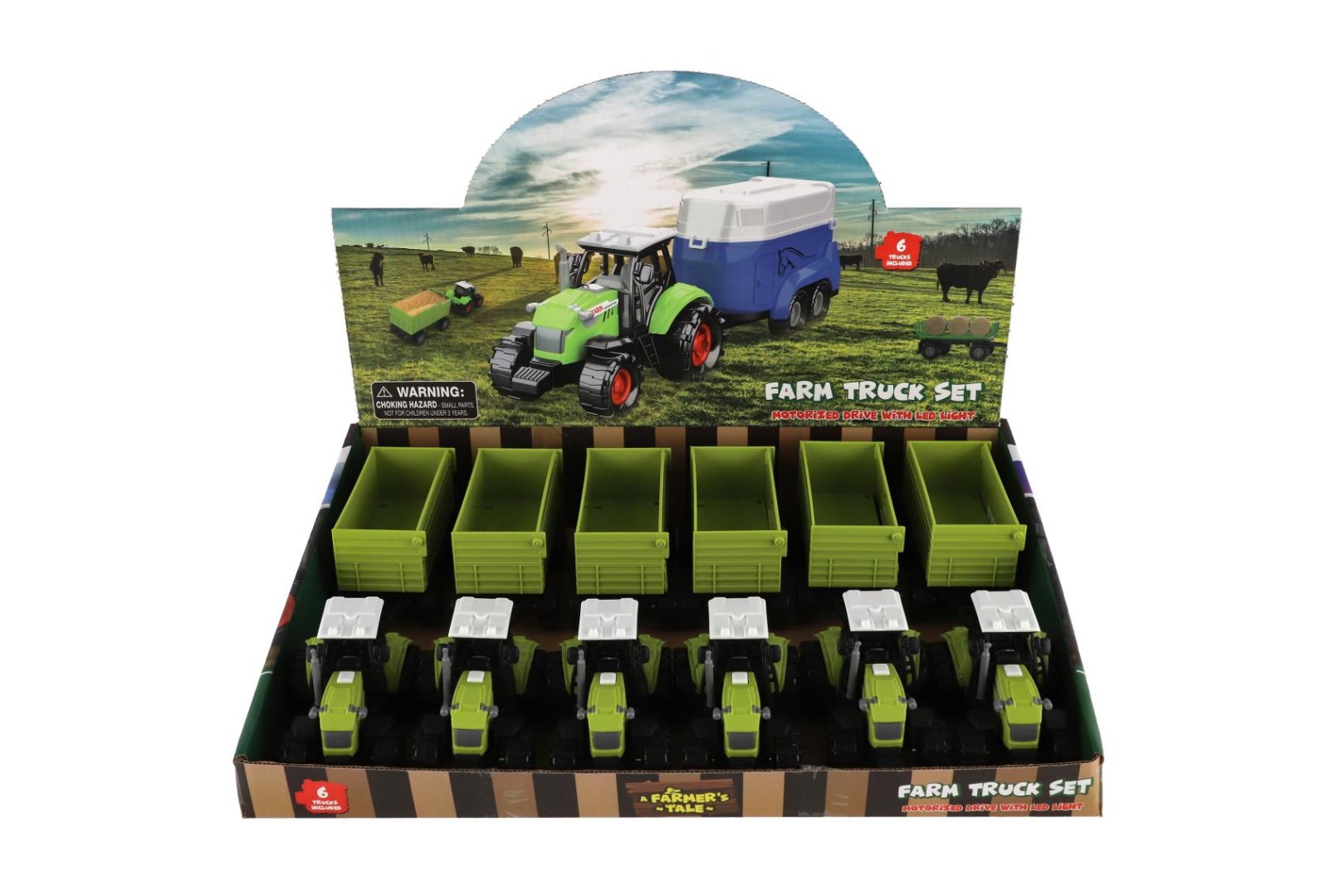 Vyjeď na pole s tímto realisticky zpracovaným plastovým traktorem s valníkem! Traktor je vybaven světelnými a zvukovými efekty na baterie a volným chodem pro snadné hraní. Skvělá hračka pro malé farmáře – doma i na zahradě.