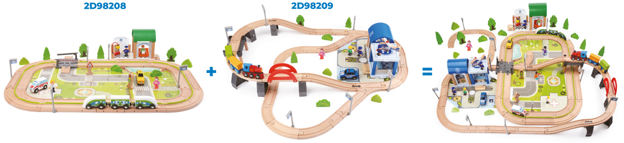 A pro ještě větší zábavu lze vláčkodráhu kombinovat se sadou Vláčkodráha Město 90 dílů (kód produktu 2D98209) – společně vytvoří barevné a rozmanité železniční městečko!