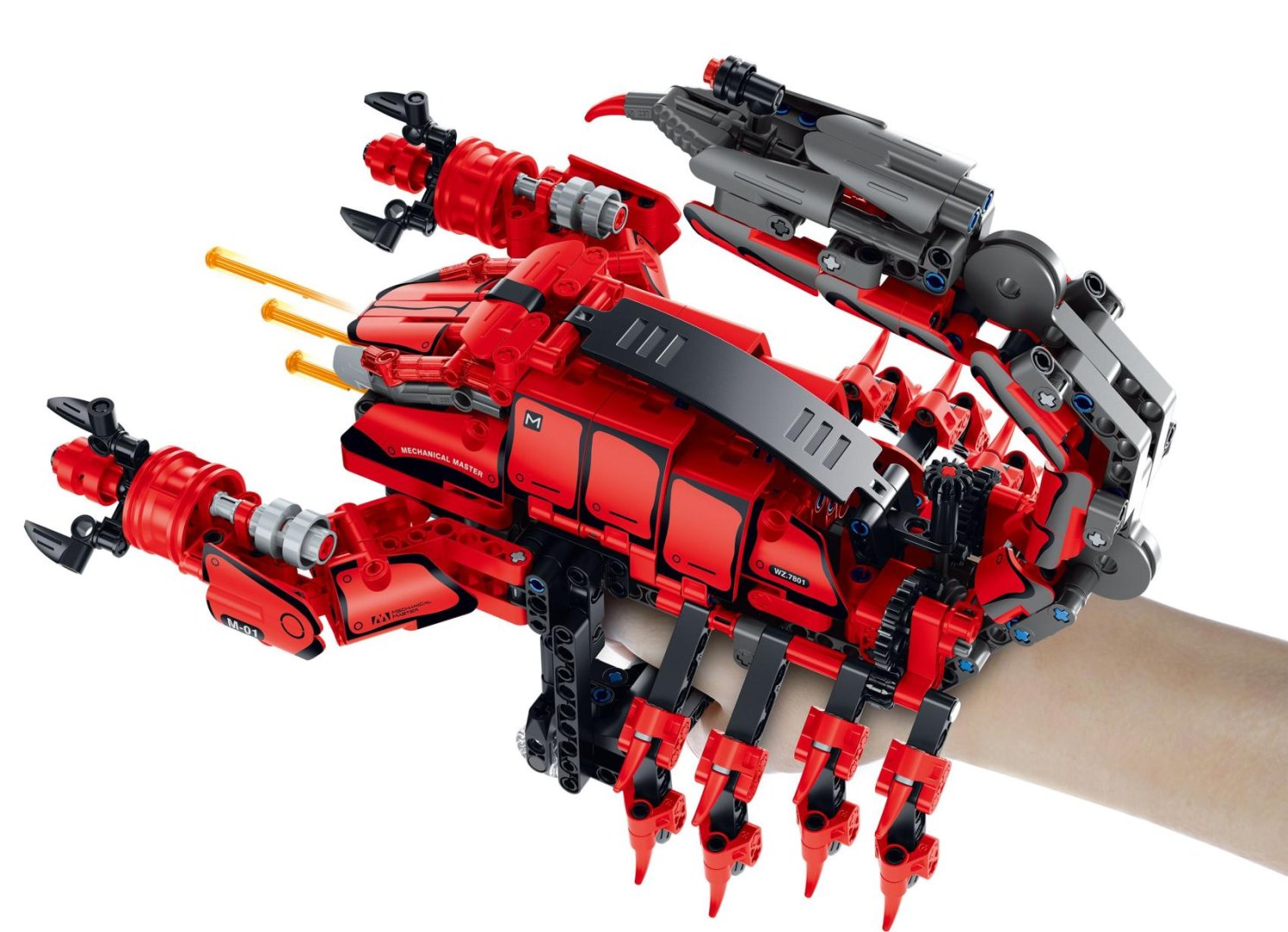 Sestavte si impozantního červeného škorpiona, který se během chvilky promění v mechanickou zbraň na ruku. Uchycení na ruku: pomocí nastavitelného mechanismu. Ovládací mechanismus na spodní straně umožňuje pohyb drápy, klepety a ocasem. Design ve stylu kybernetického brnění – vhodný i jako nositelný model. Vystřelovací prvky a realistické klouby. STEM vzděeelávání: rozvíjí technickou představivost, logiku a konstrukční dovednosti.