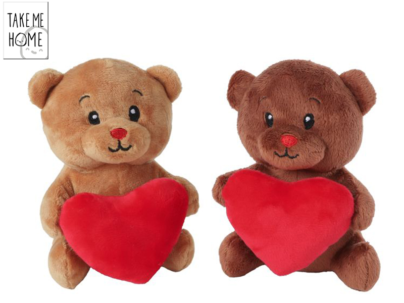 Sedící plyšový medvěd s červeným srdíčkem v licenci Take Me Home. Vybírat můžete ze dvou barevných variant.
