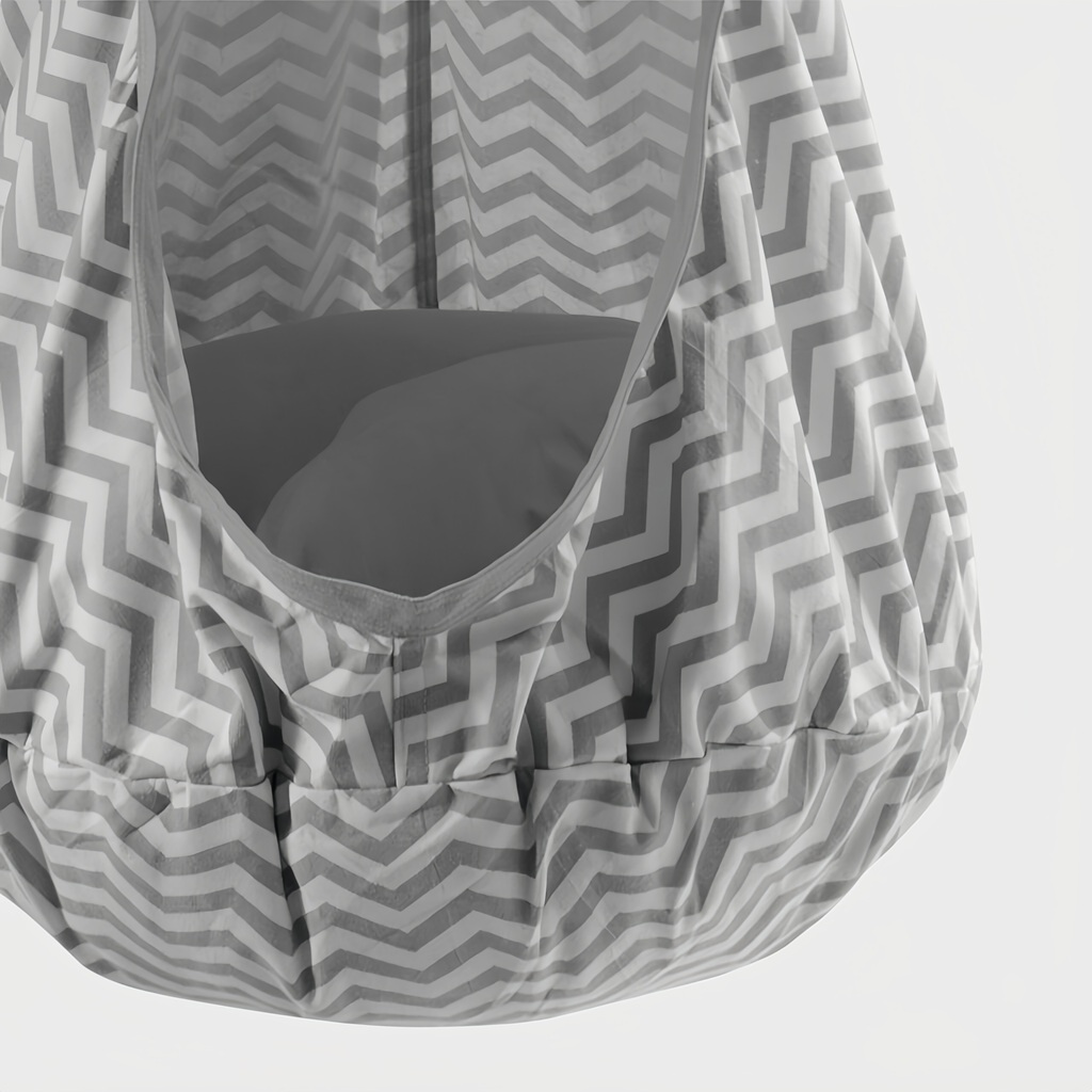 Pohodlí, relaxace a zábava!Pohodlí, relaxace a zábava! Houpací vak v elegantní šedé barvě nabízí dětem od 3 let útulné místo k odpočinku, čtení, prohlížení obrázků a houpání. Díky přírodnímu pevnému materiálu poskytuje pohodlí a zároveň dostatečnou odolnost pro každodenní používání. Vak jemně kopíruje tvar těla, takže se dítě cítí v bezpečí a uvolněně. Trendy šedá barva se hodí do každého interiéru, od dětského po obývací pokoj.