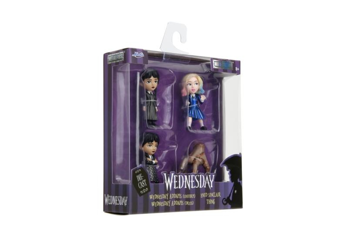 Sada 4 kovových figurek z filmu "Wednesday" o velikosti 6 cm.