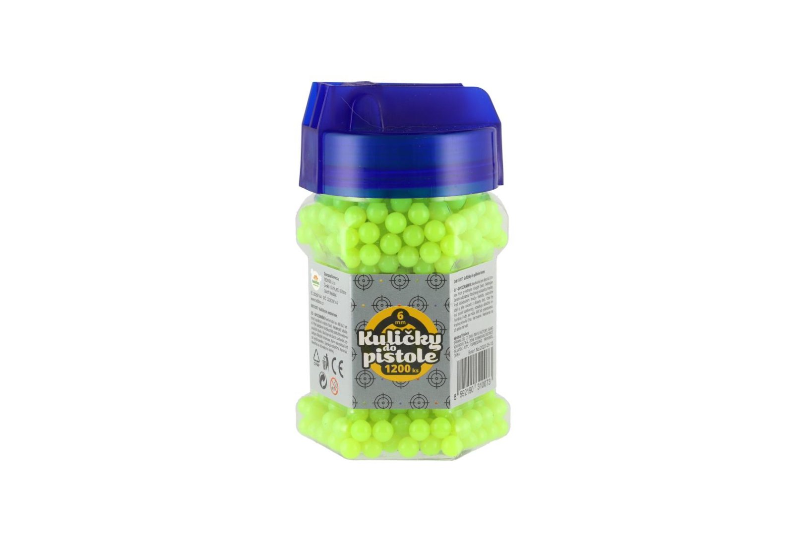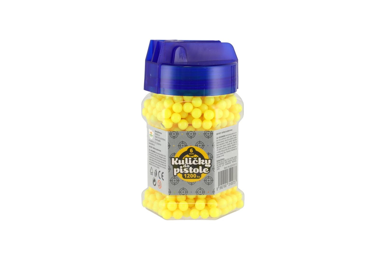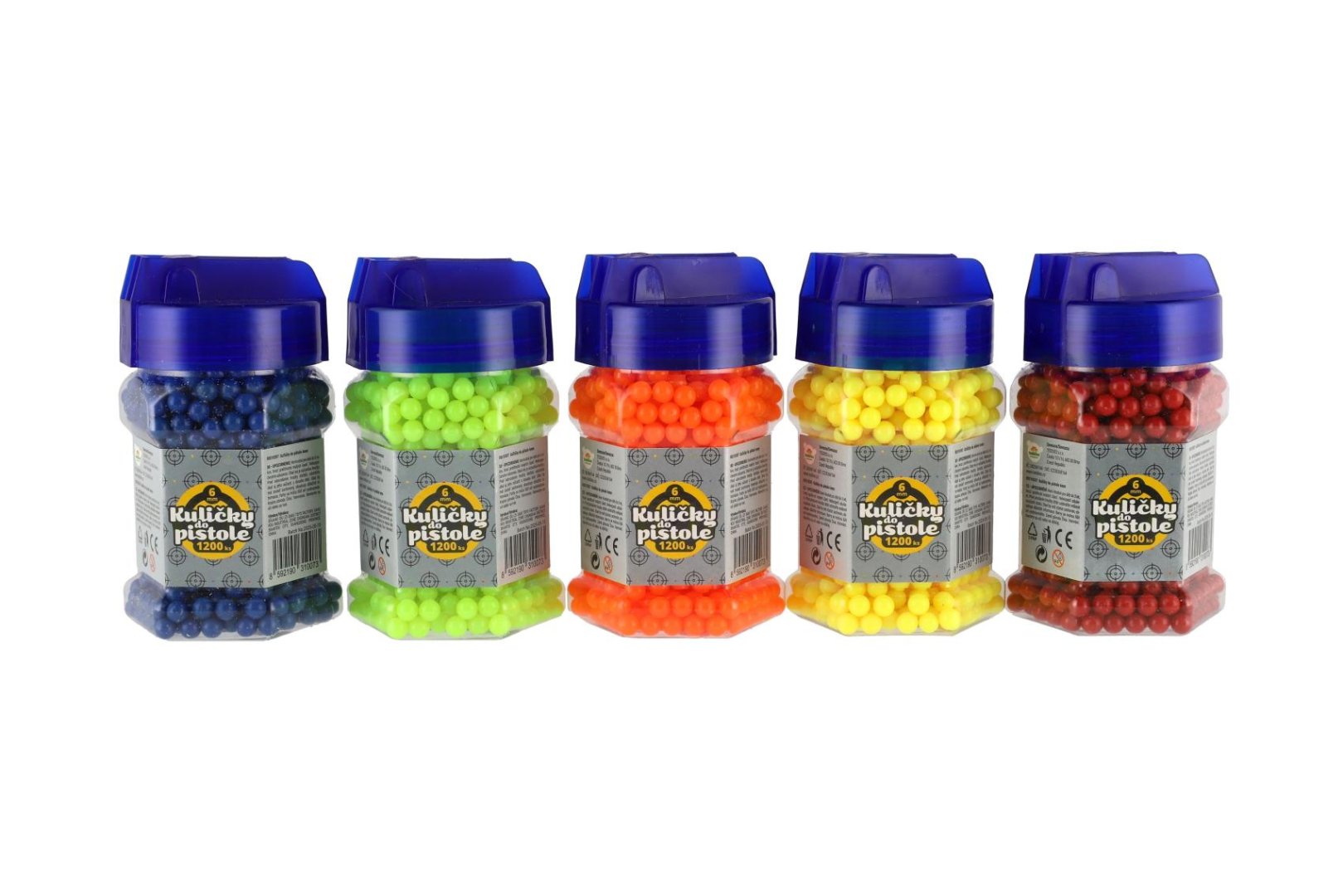 Náhradní plastové kuličky do pistolí pro dětské střelce a zábavné soutěže ve střelbě na cíl. Balení obsahuje 1200 kusů kuliček o průměru 6 mm, které jsou lehké a vhodné pro běžné hračkářské pistole. Díky praktické lahvičce s uzávěrem se kuličky snadno skladují a dávkují.