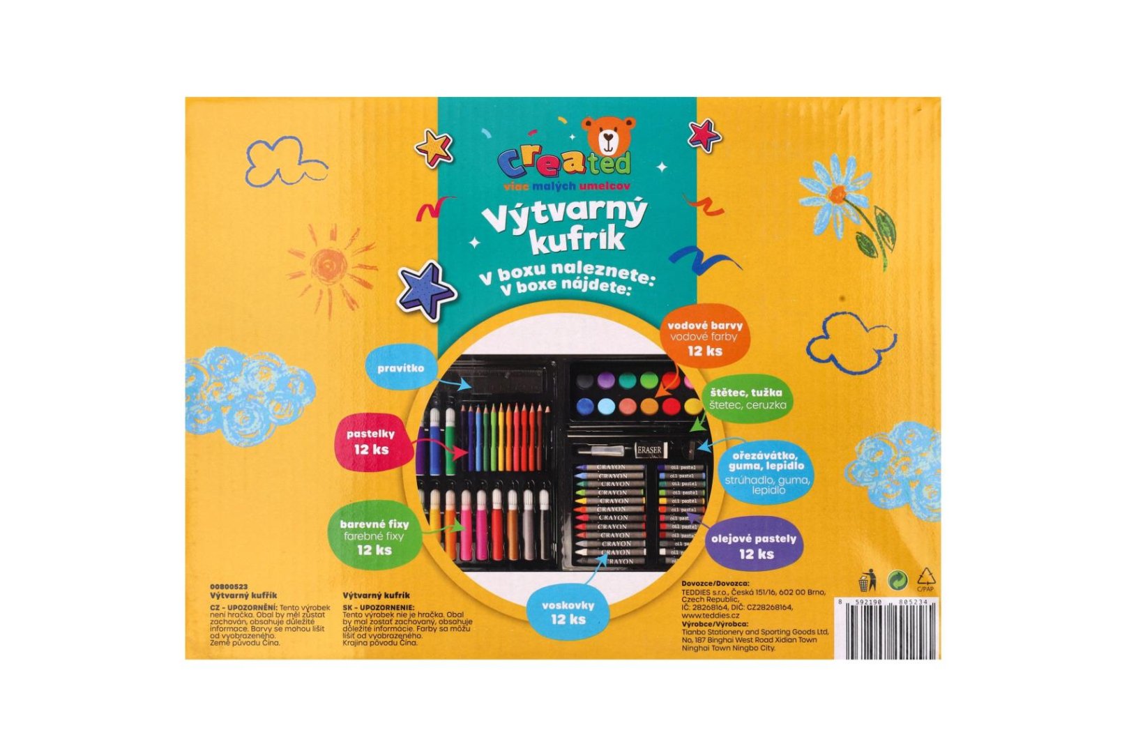 S tímto kufříkem mají malí umělci vše po ruce – a mohou tvořit kdykoli a kdekoli. Ideální na doma, na cesty i do školky. Plný pastelek, fixů, vodovek a dalších pomůcek, které rozvíjejí dětskou fantazii. Každý produkt created vzniká s cílem rozvíjet dětskkou fantazii, tvořivost a přirozenou zvídavost.