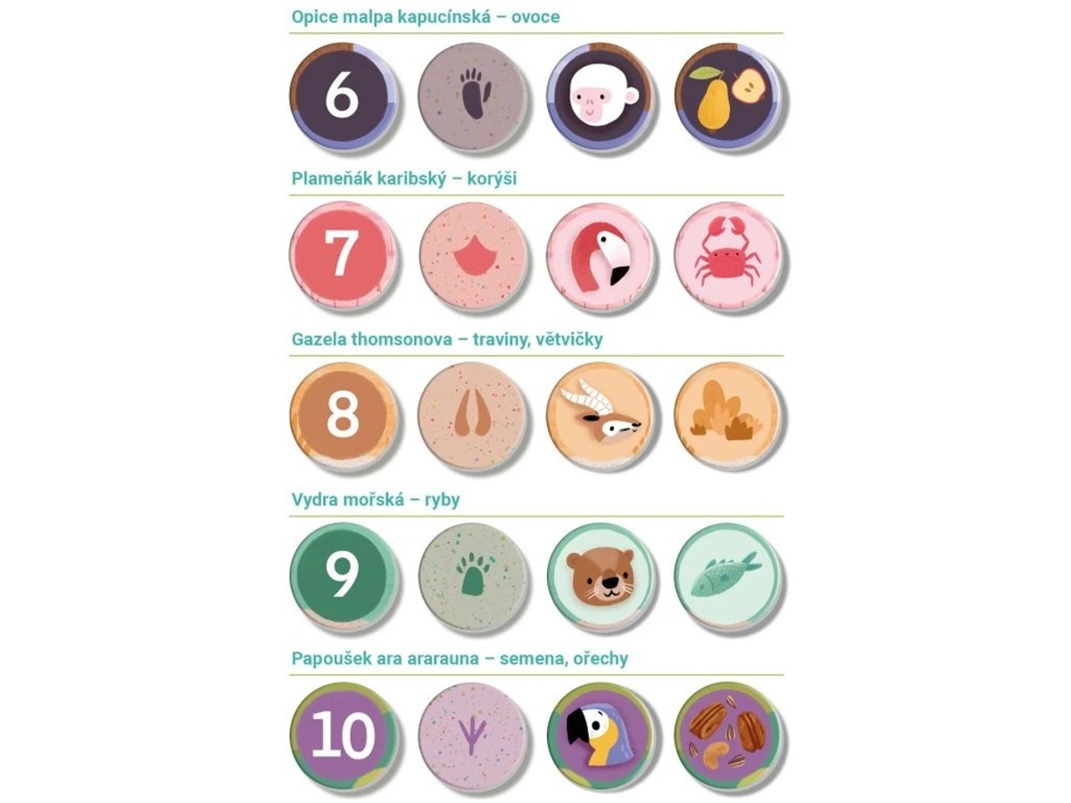 10 žetonů s potravou a nápovědou - Průměr žetonů: 5 cm