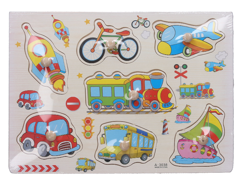 Veselé vkládací puzzle s dopravními prostředky pomáhá dětem rozvíjet jemnou motoriku, koordinaci ruka-oko a logické myšlení.EAN: 8590331027552