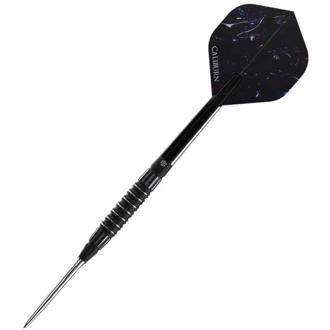 Steelové šipky Caliburn Sword jsou wolframové šipky (95% tungsten) s černými barrely v úchvatném designu. Barrely jsou doplněny nylonovými násadkami a letkami Caliburn. Šipky mají vyměnitelný systém hrotů Caliburn Replaceable Point System. Dodávány jsou i s klíčem pro výměnu hrotů Caliburn (X1997).