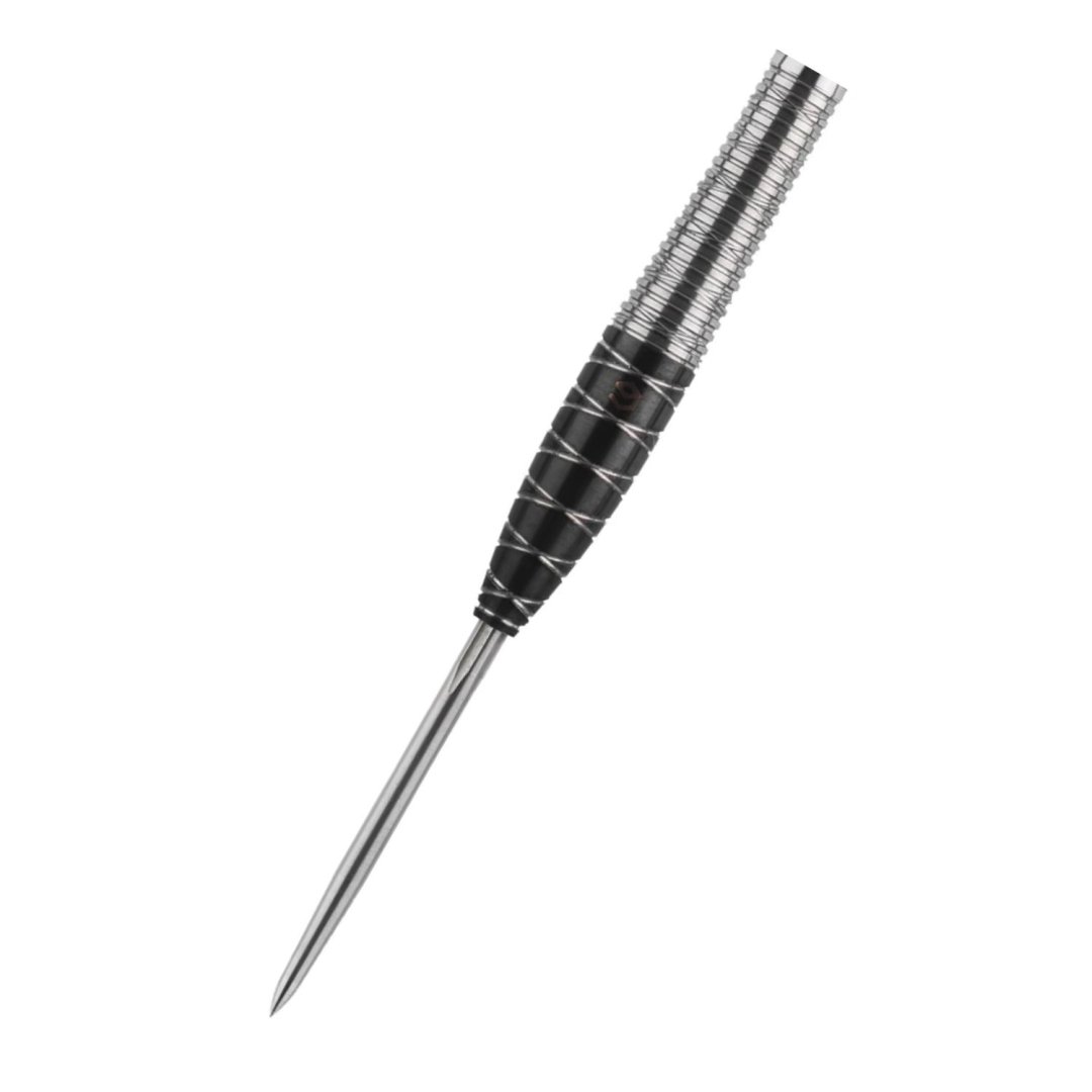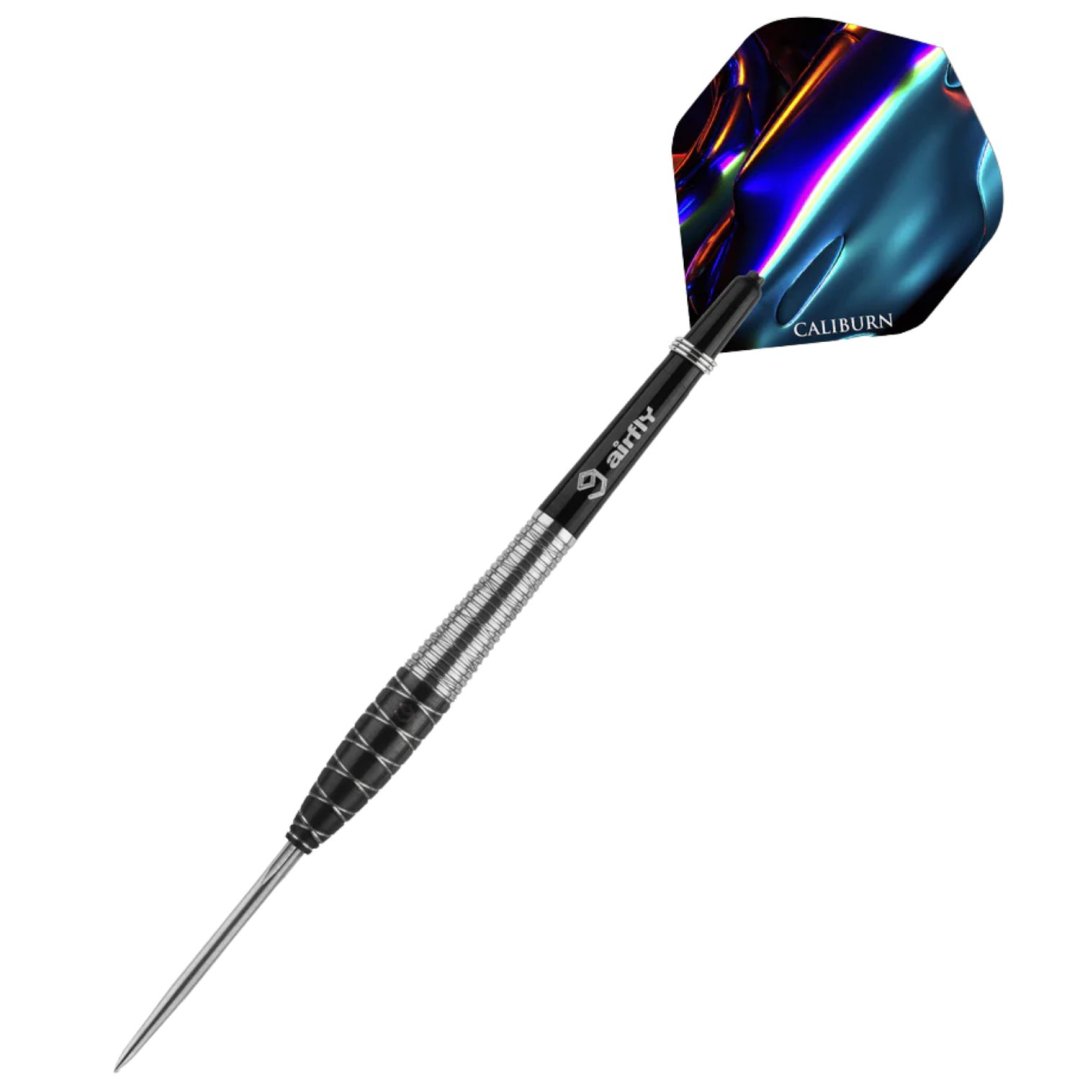 Steelové šipky Caliburn Spiro jsou wolframové šipky (90% tungsten) s černo-stříbrnými barrely v originálním designu.