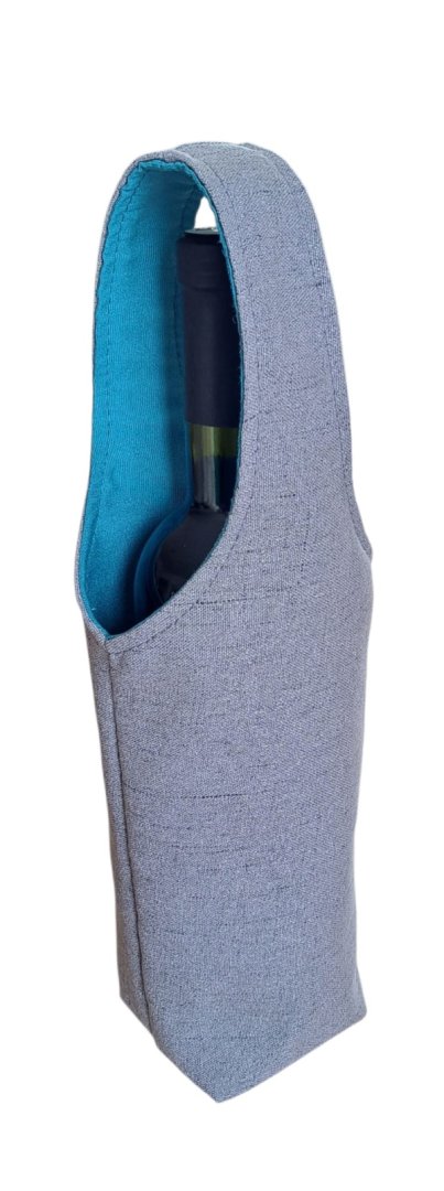 Udělejte z lahve vína dokonalý dárek! Tato textilní taška v elegantní kombinaci šedého melíru a tyrkysové je ideální pro každou příležitost. Zapomeňte na jednorázové papírové obaly. Tato taška z šedého melírovaného polyesteru s decentními tyrkysovými prvky je navržena pro opakované použití. Je dostatečně pevná, aby udržela láhev v bezpečí, a díky možnosti praní vypadá vždy jako nová. Snadno se do ní vejde jak klasická lahev vína, tak i oblíbené "bohemky".