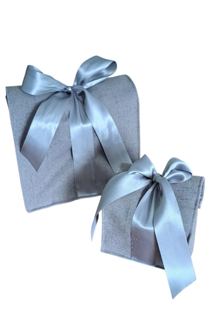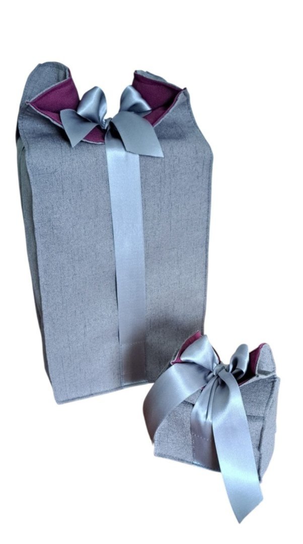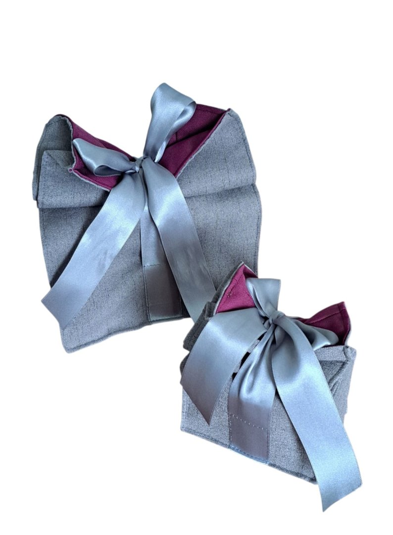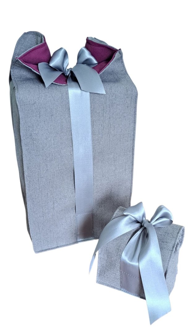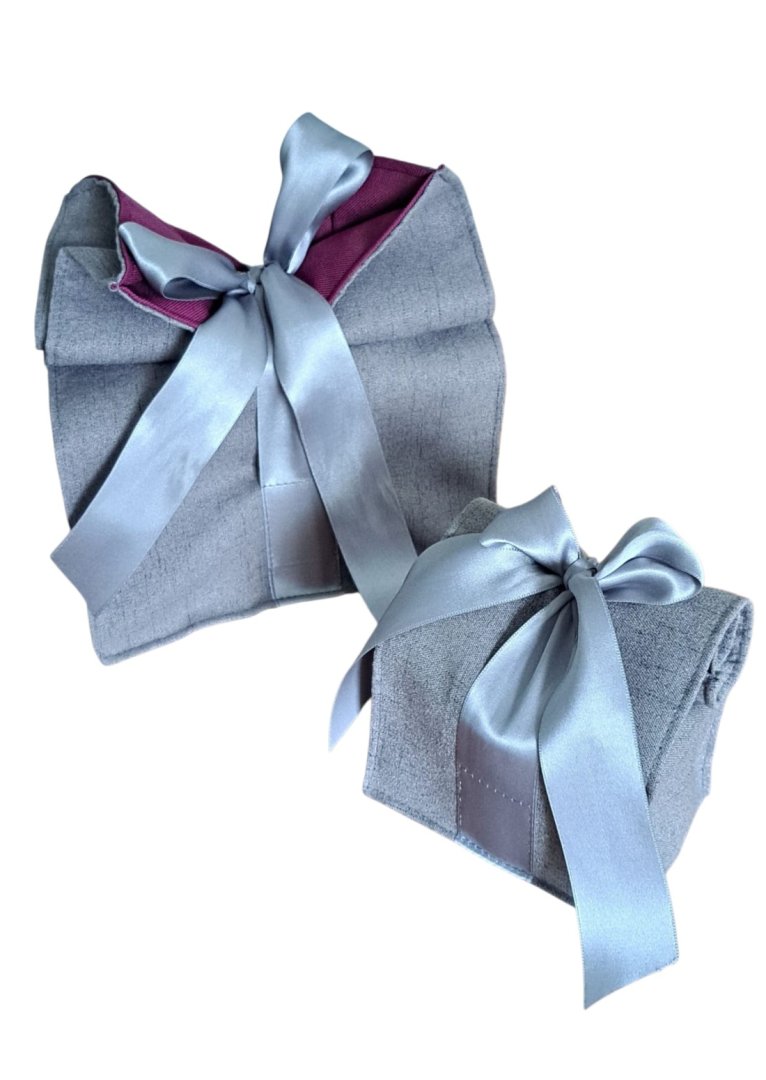 Perfektní kombinace pro stylové a ekologické balení dárků!Perfektní kombinace pro stylové a ekologické balení dárků! Tato sada obsahuje dva pratelné textilní pytlíky – jeden velký na větší dary a jeden malý na drobnosti. Oba pytlíky jsou vyrobeny z odolného polyesteru, jsou dostatečně pevné, chrání obsah a díky možnosti praní jsou skvělou alternativou k jednorázovým balícím papírům. Nabízí více způsobů zavázání, takže můžete experimentovat s mašlemi a uzly. Ideální pro malé a velké překvapení! Elegantní šedý melír s fialovou vnitřní podšívkou dodá vašemu dárku šmrnc.