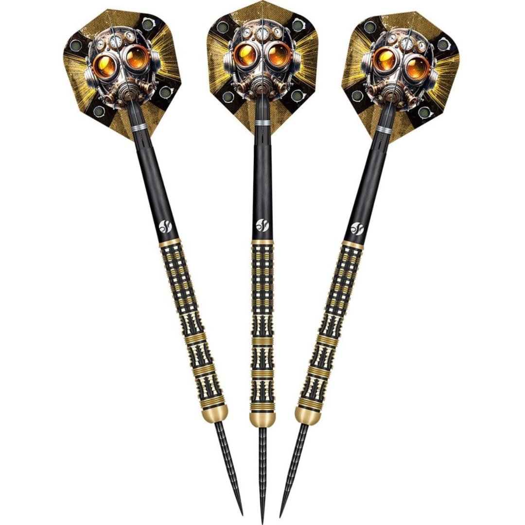 Steelové šipky Shot Badlands The Sheriff jsou wolframové šipky (90% tungsten) v ohromujícím designu. Černozlaté barrely s jedinečným drážkováním dodávají šipce luxusní vzhled.