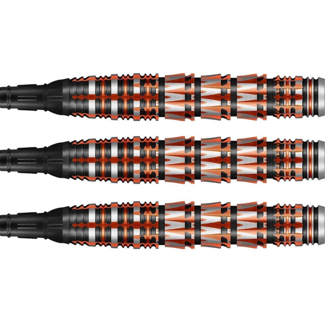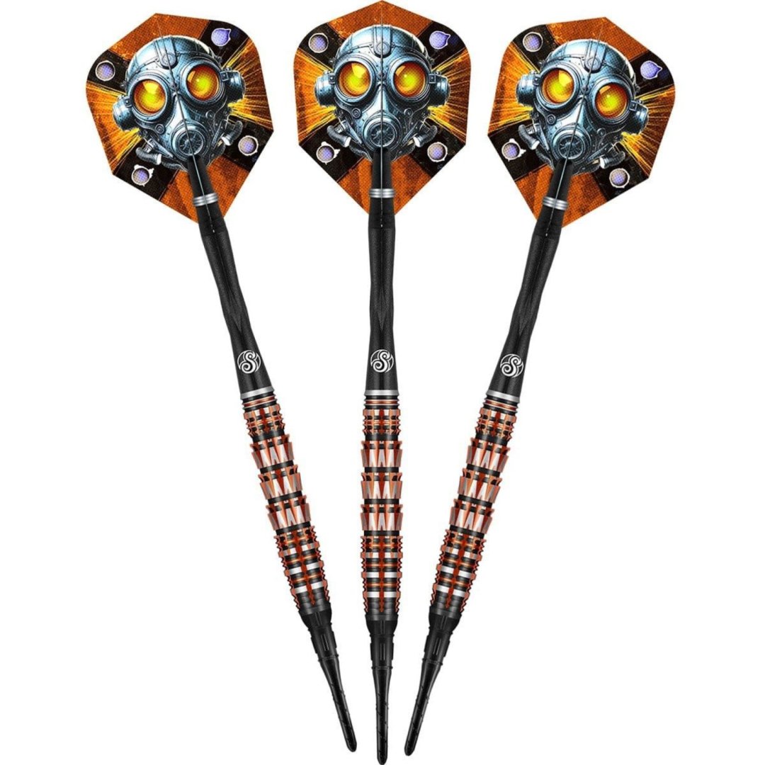 Softové šipky Shot Badlands Rustin jsou wolframové šipky (90% tungsten) v dokonalém designu. Originální barrely s jedinečným drážkováním a v ohnivých barvách vás jistě ohromí.