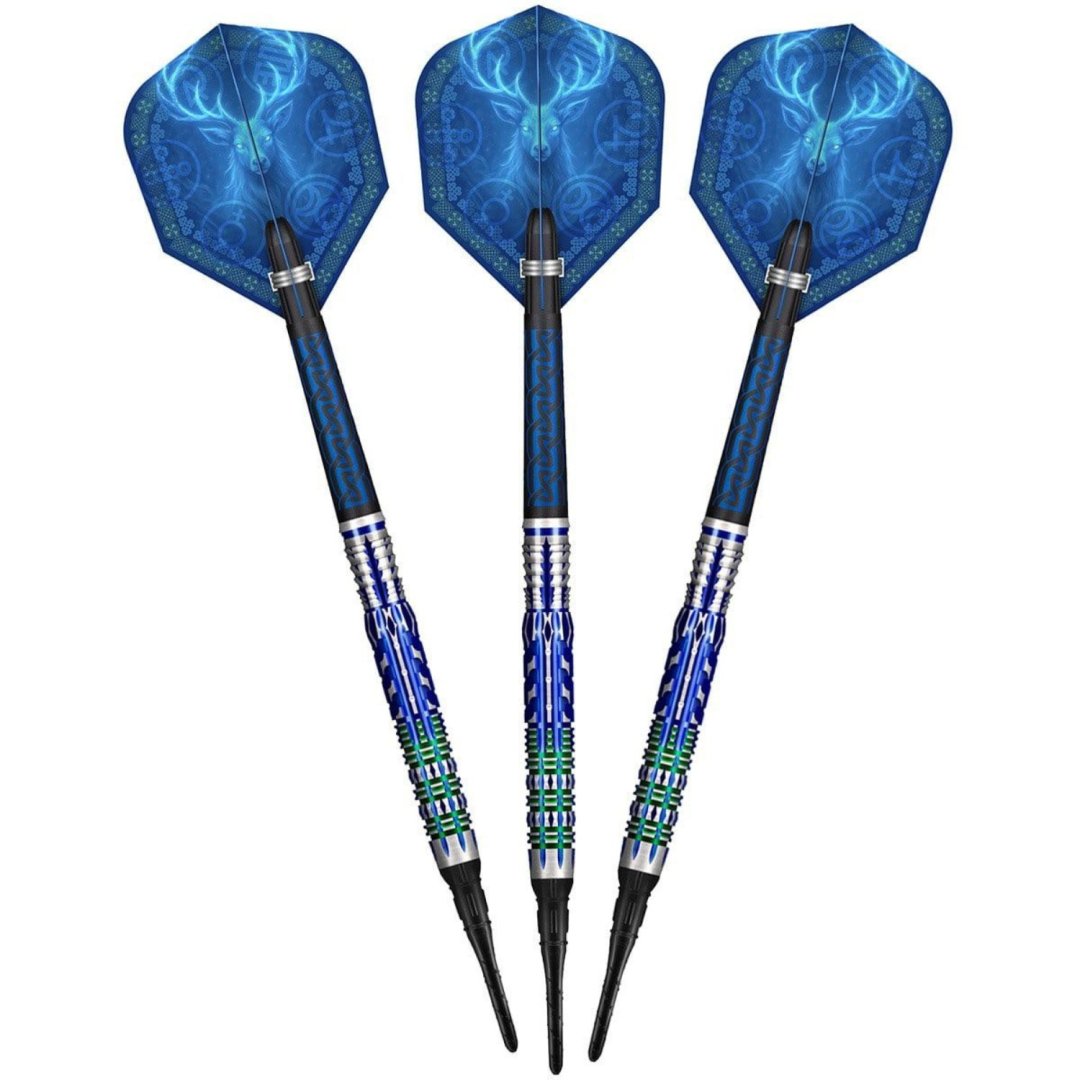 Softové šipky Shot Celt Merlin jsou wolframové šipky (95% tungsten) v naprosto ohromujícím designu. Jedinečné drážkování barrelu je zvýrazněno modrou a zelenou barvou. Barrely jsou doplněny nylonovými násadkami a letkami Shot. Sada obsahuje 1 sadu násadek a 1 sadu letek navíc.