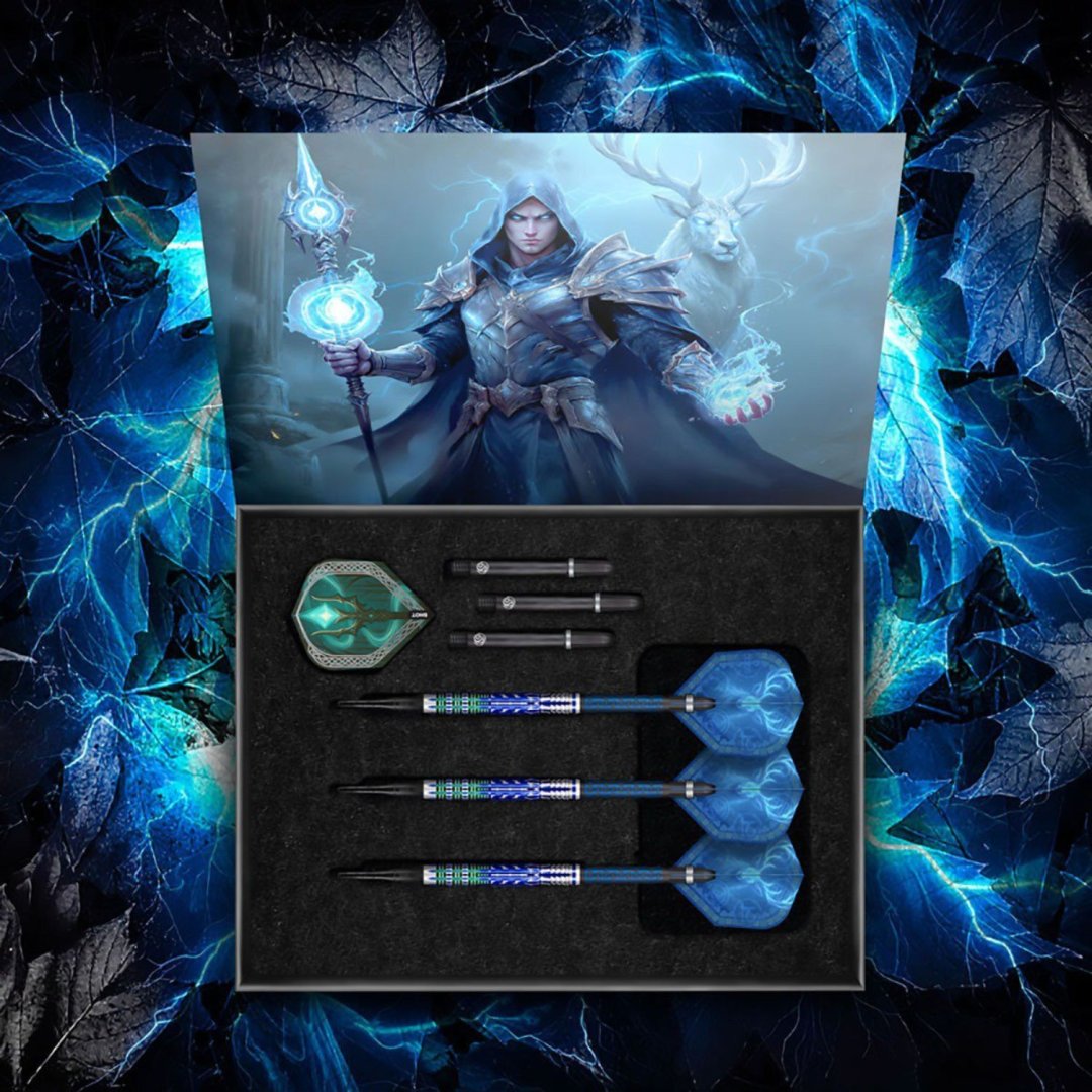 Softové šipky Shot Celt Merlin jsou wolframové šipky (95% tungsten) v naprosto ohromujícím designu. Jedinečné drážkování barrelu je zvýrazněno modrou a zelenou barvou.