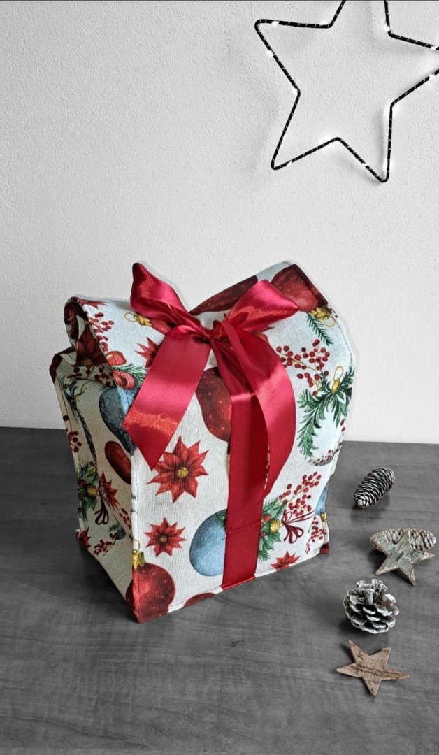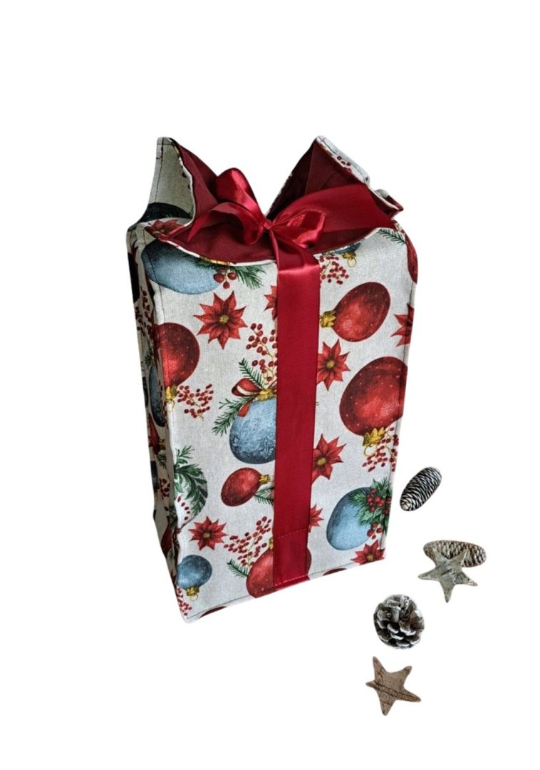 Udělejte z každého malého vánočního dárku výjimečné překvapení!Udělejte z každého malého vánočního dárku výjimečné překvapení! Tento látkový pytlík s vánočním motivem je perfektní volbou. Na světlém podkladu vynikají velké červené vánoční koule. Vnitřní strana je podšitá elegantní tmavě červenou látkou, která ladí s motivem na vnější straně. Připravte se na kouzelné Vánoce a dodejte svému dárku punc luxusu a originality. Zapomeňte na jednorázové papírové obaly. Dárkový pytlík s vánočními motivy je navržen pro opakované použití. Je dostatečně pevný, chrání obsah a díky možnosti praní je skvělou alternativou k jednorázovým balicím papírům. Nabízí více způsobů zavázání, takže můžete experimentovat s mašlemi a uzly.