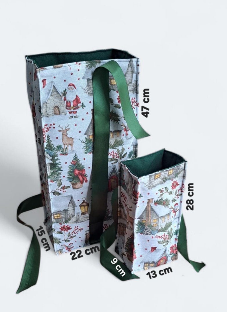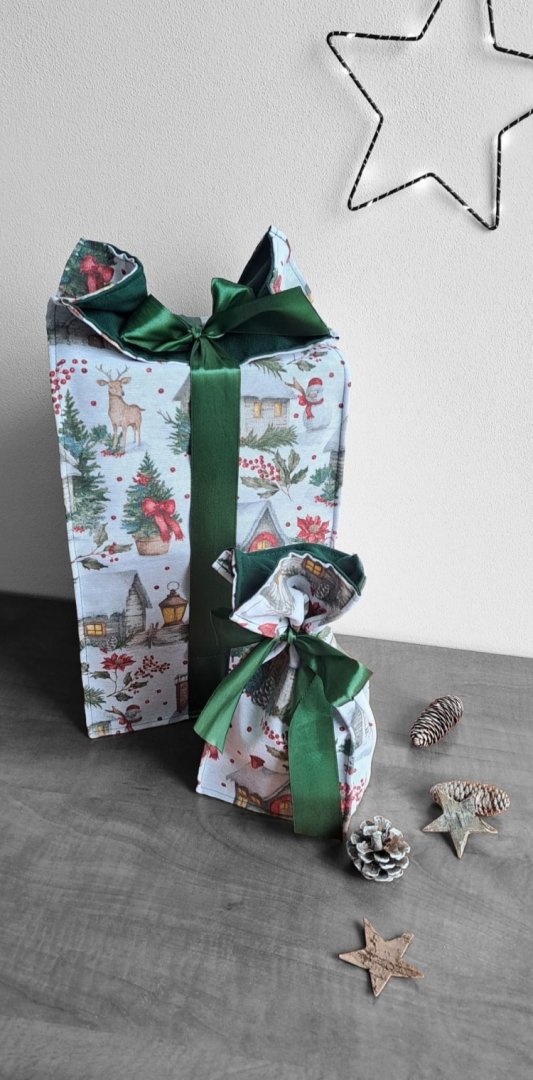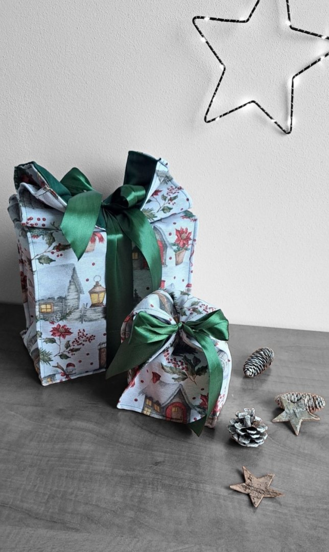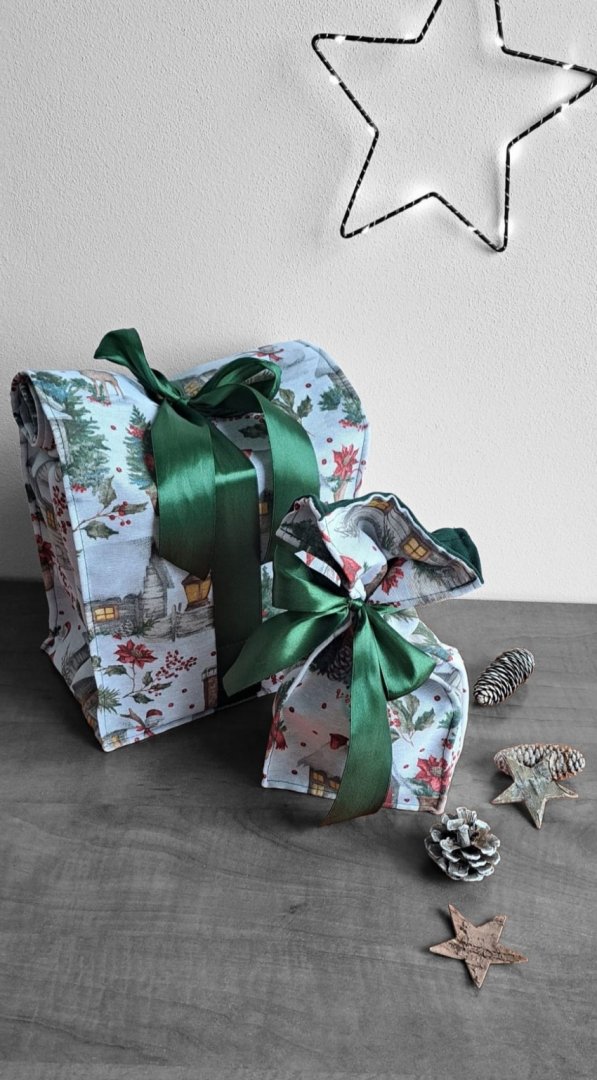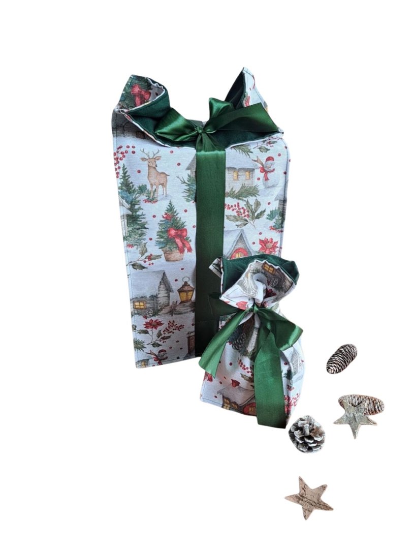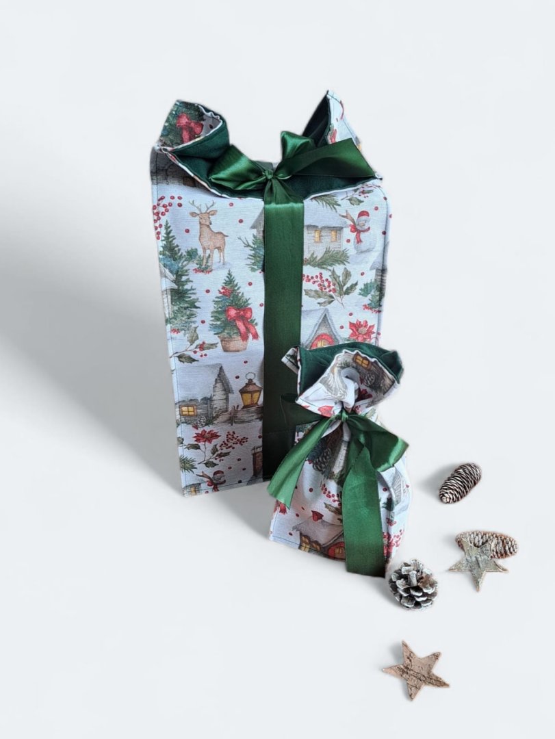 Perfektní kombinace pro stylové a ekologické balení vánočních dárků!Perfektní kombinace pro stylové a ekologické balení vánočních dárků! Udělejte z každého vánočního dárku výjimečné překvapení! Tyto látkové pytlíky s okouzlujícím zimním a vánočním motivem – zasněžené chaloupky, jehličí a červené bobule jsou perfektní volbou. Vnitřní strana je podšitá elegantní tmavě zelenou látkou, která ladí se sváteční atmosférou. Připravte se na kouzelné Vánoce a dodejte svému dárku punc luxusu a originality. Zapomeňte na jednorázové papírové obaly. Dárkové pytlíky s vánočními motivy jsou navrženy pro opakované použití. Jsou dostatečně pevné, chrání obsah a díky možnosti praní jsou skvělou alternativou k jednorázovým balicím papírům. Nabízí více způsobů zavázání, takže můžete experimentovat s mašlemi a uzly.