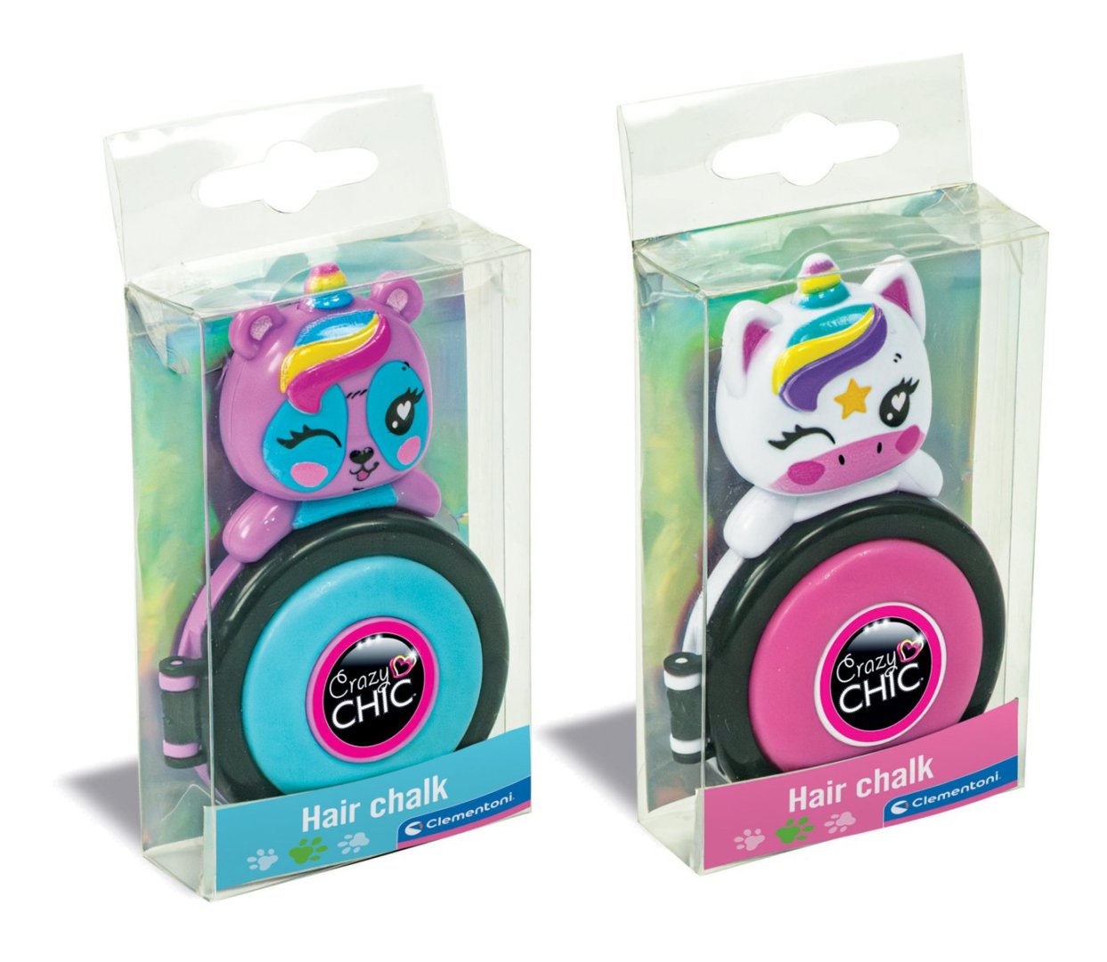Překvapte všechny originálním účesem s Crazy CHIC – Lovelly Collection křídou na vlasy. Tato unikátní sada obsahuje práškové barvy na vlasy v roztomilých baleních s motivem fantasy zvířat. Ideální pro mladé stylistky. Každá barva je uzavřena v praktické nádobce, která se snadno vejde do batohu nebo kabelky. Díky nim si můžete během pár okamžiků vykouzlit barevné melíry – aniž byste museli navštívit kadeřníka.