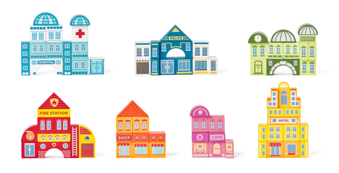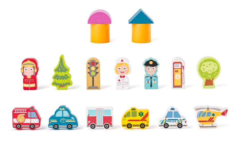 Otevři kyblík plný barevných dřevěných kostek v jedinečném designu české výtvarnice a postav si vlastní město plné života! Vytvoř požární a policejní stanici, nemocnici, školu, kavárnu i obchod. Nech ulicemi projíždět auta, vrtulník kroužit nad městem a plnit své úkoly. Podkladová deska z puzzle dílů dotvoří dokonalou scénu pro tvé příběhy!