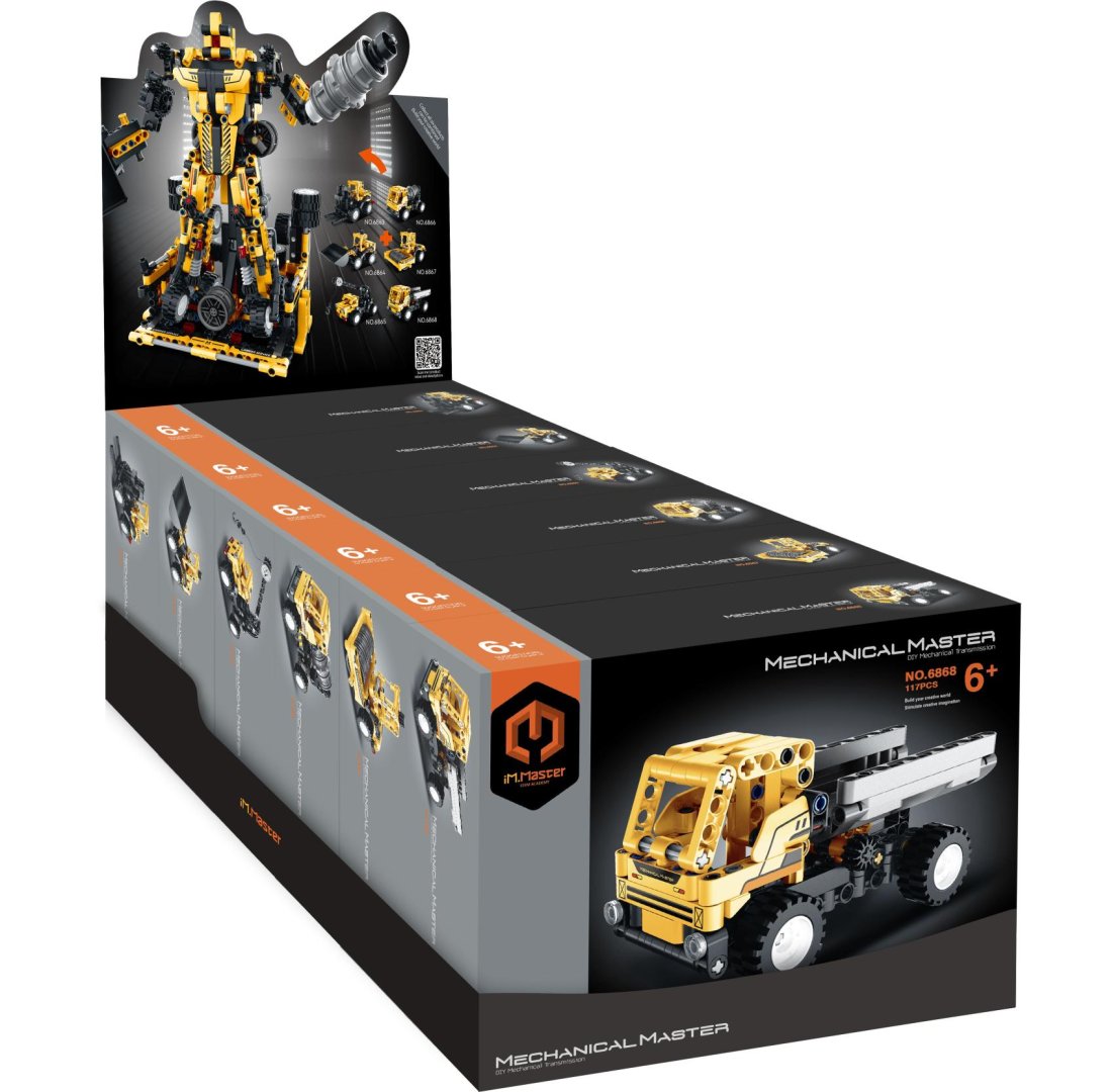 Stavebnice iM.MASTER potěší všechny malé konstruktéry a fanoušky techniky. Každá sada umožňuje postavit realistický model stavebního stroje a rozvíjí dětskou kreativitu, jemnou motoriku a logické myšlení. Modely lze kombinovat a složit dohromady do většího robota podle návodu. Díly jsou vyrobeny z kvalitního plastu a skládání je jednoduché a bezpečné. Vybírat můžete ze šesti druhů stavebních strojů.