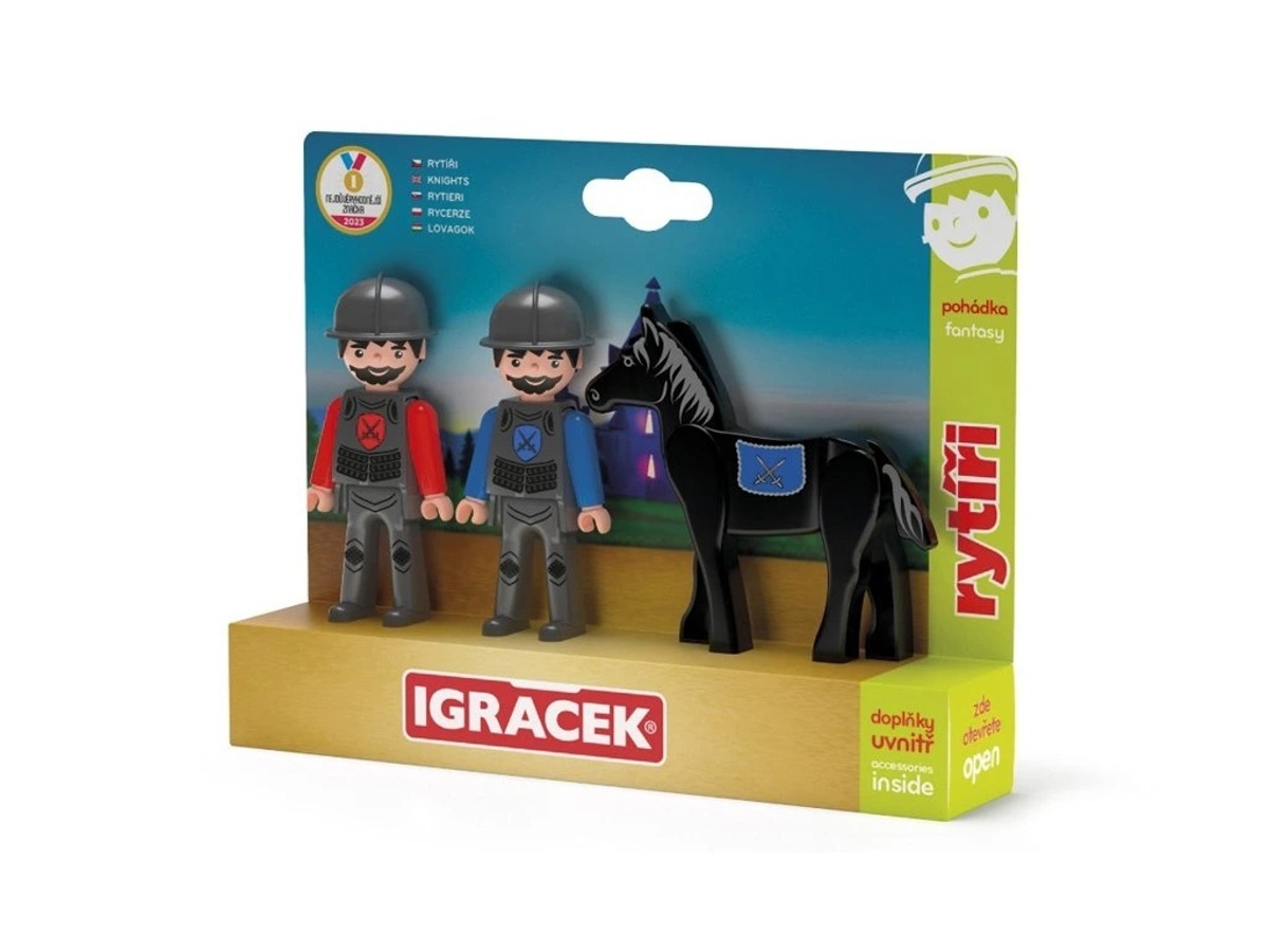 V pohádkovém světě Igráčka na tebe čeká vzpurný černý oř, kterého dokáží osedlat dva rytíři bojovníci v mohutném brnění s mečem a štítem. Vydej se s nimi za vzrušujícím dobrodružstvím.