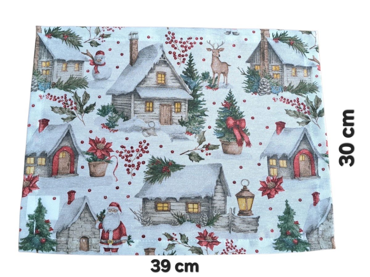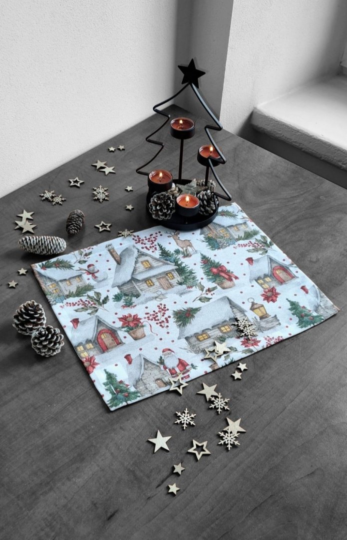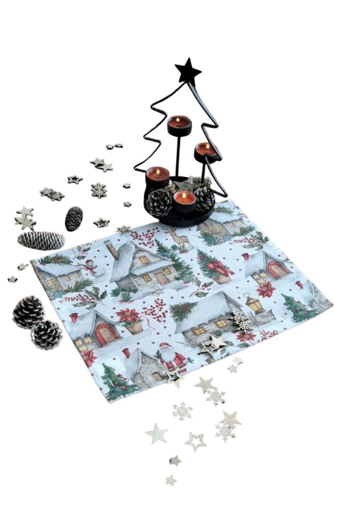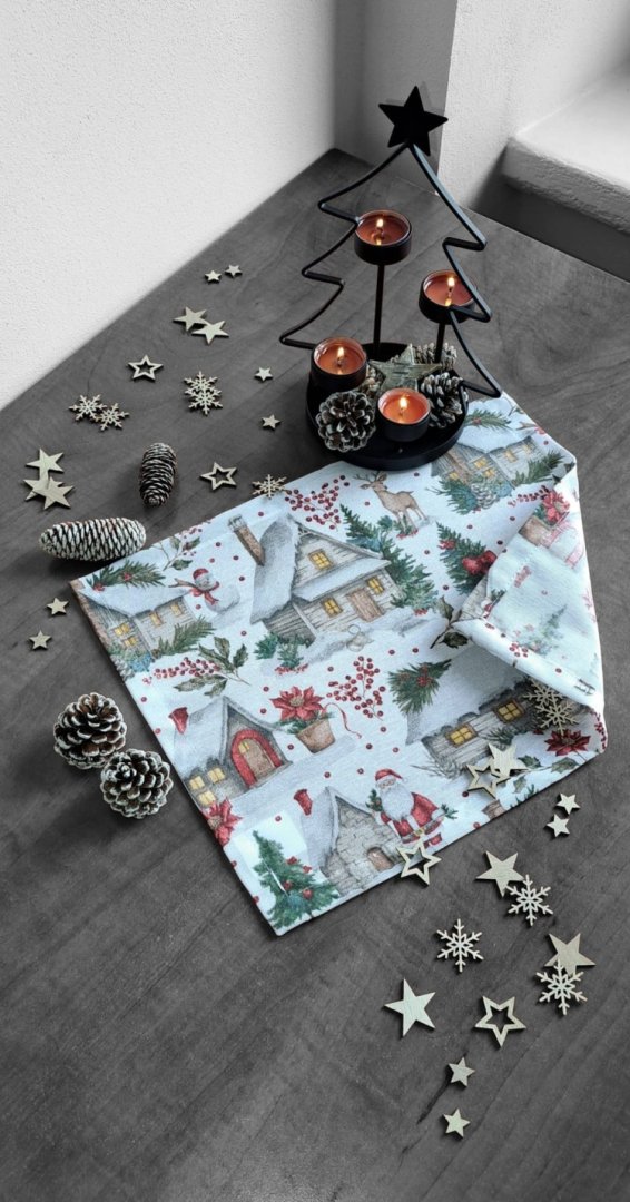 Připravte svůj stůl na sváteční sezónu s tímto elegantním textilním prostíráním. Prostírání s okouzlujícím zimním a vánočním motivem – zasněžené chaloupky, jehličí a červené bobule – okamžitě vnesou do interiéru útulnou a slavnostní atmosféru. Kombinace bavlny a polyesteru zajišťuje snadnou údržbu a dlouhou životnost.