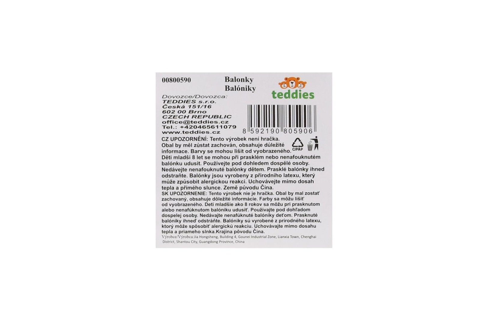 Kód 1: 00800590