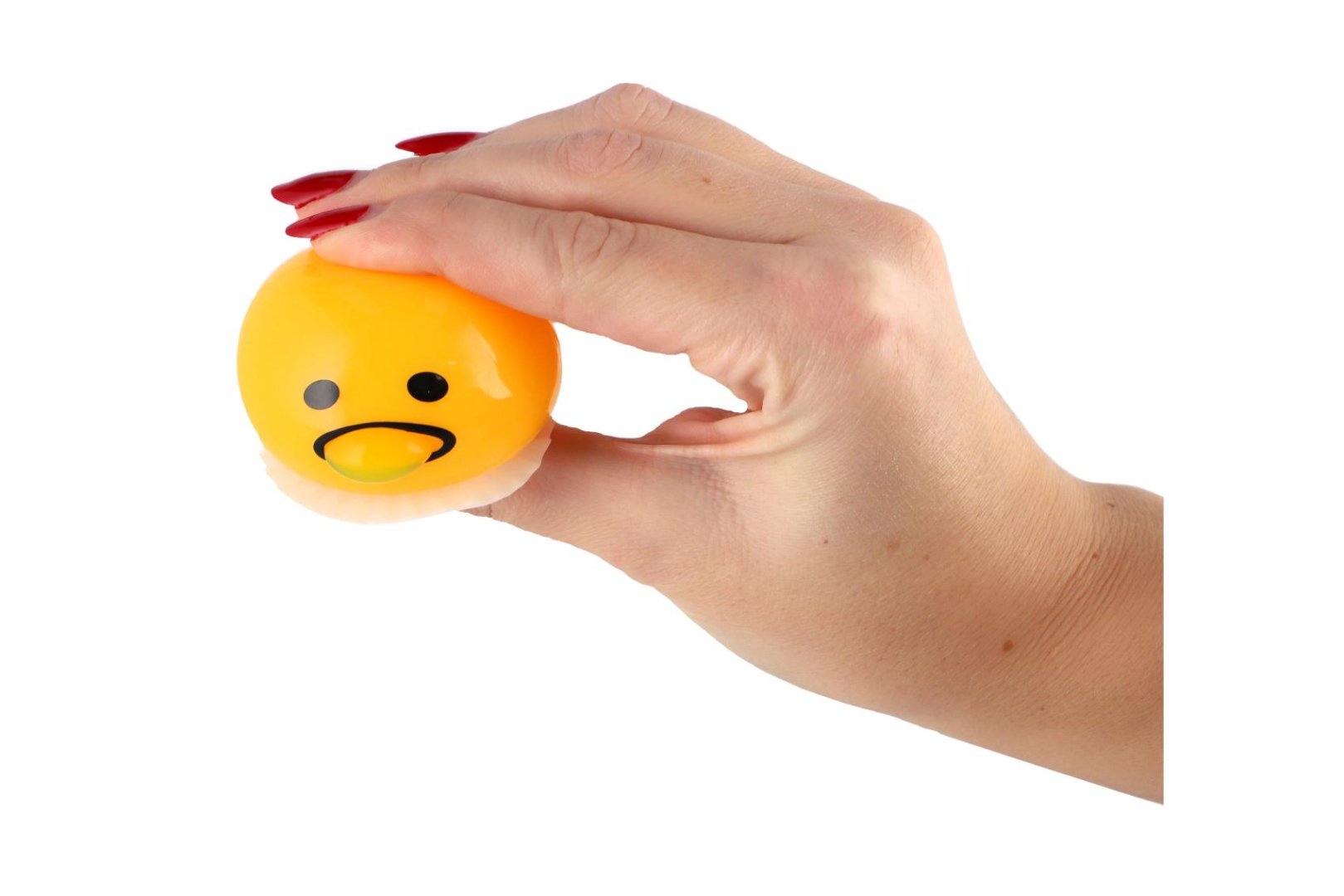 Vtipná antistresová hračka ve tvaru žlutého míčku se smajlíkem, který po zmáčknutí „zvrací“ sliz. Balení obsahuje i kapsli se slizem, který se vkládá do otvoru míčku. Po stisku míček sliz vytlačí ven a po uvolnění jej zase nasaje zpět dovnitř. Zábavný způsob, jak uvolnit napětí a rozesmát okolí.