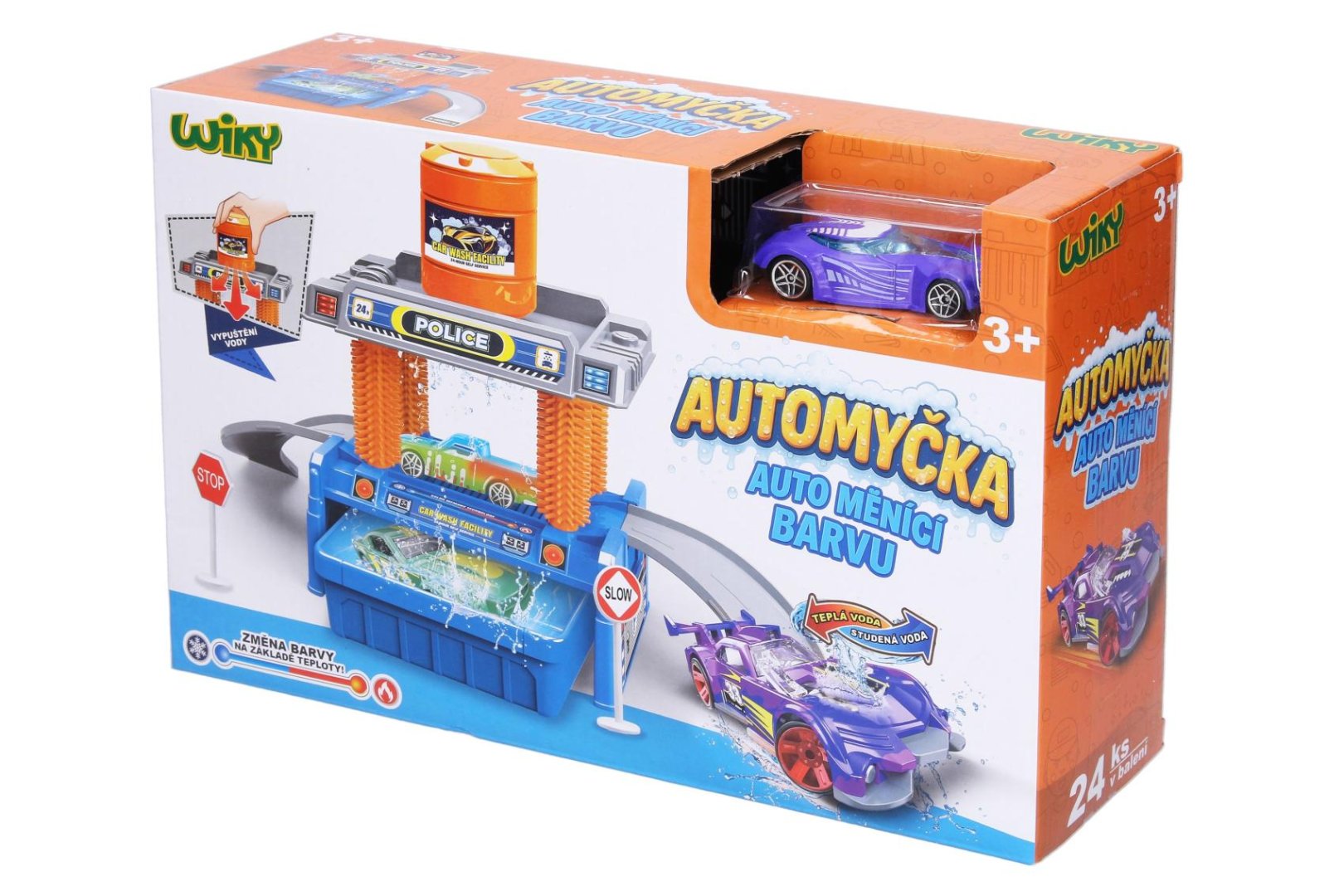Objevte kouzlo proměny s touto sadou! Zábavná myčka aut s jedinečným autíčkem, které mění barvu v závislosti na teplotě vody. Auto mění barvu v závislosti na teplotě vody. Umyjte studenou vodou, nebo teplou vodou (více než 37°C). Nasajte do nádržky vodu (nádržka je měkká, zmáčknutím a uvolněním nasajete vodu). Nádržku umístěte na myčku a zmáčkněte. Obrázkový návod na sestavení automyčky je na obalu.
