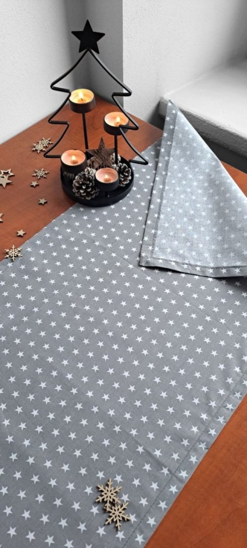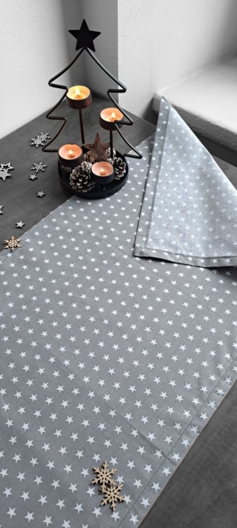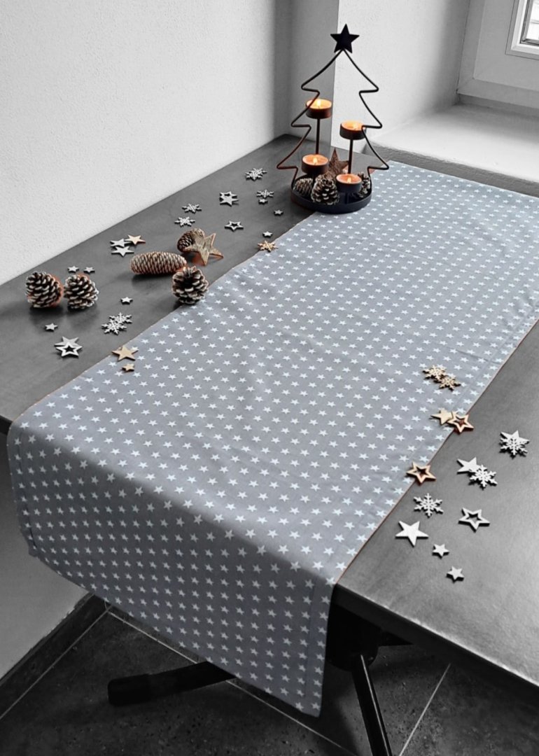 Vytvořte si dokonalou sváteční atmosféru! Tento elegantní běhoun na stůl je ideálním doplňkem pro Vaše vánoční stolování.Vytvořte si dokonalou sváteční atmosféru! Tento elegantní běhoun je ideálním doplňkem pro vaše vánoční stolování. Je vyroben z vysoce kvalitní 100% bavlny, která je příjemná na dotek a nenáročná na údržbu. Jemný šedý podklad s roztomilým vzorem bílých hvězdiček se hodí nejen na Vánoce a advent, ale i pro celou zimní sezónu.