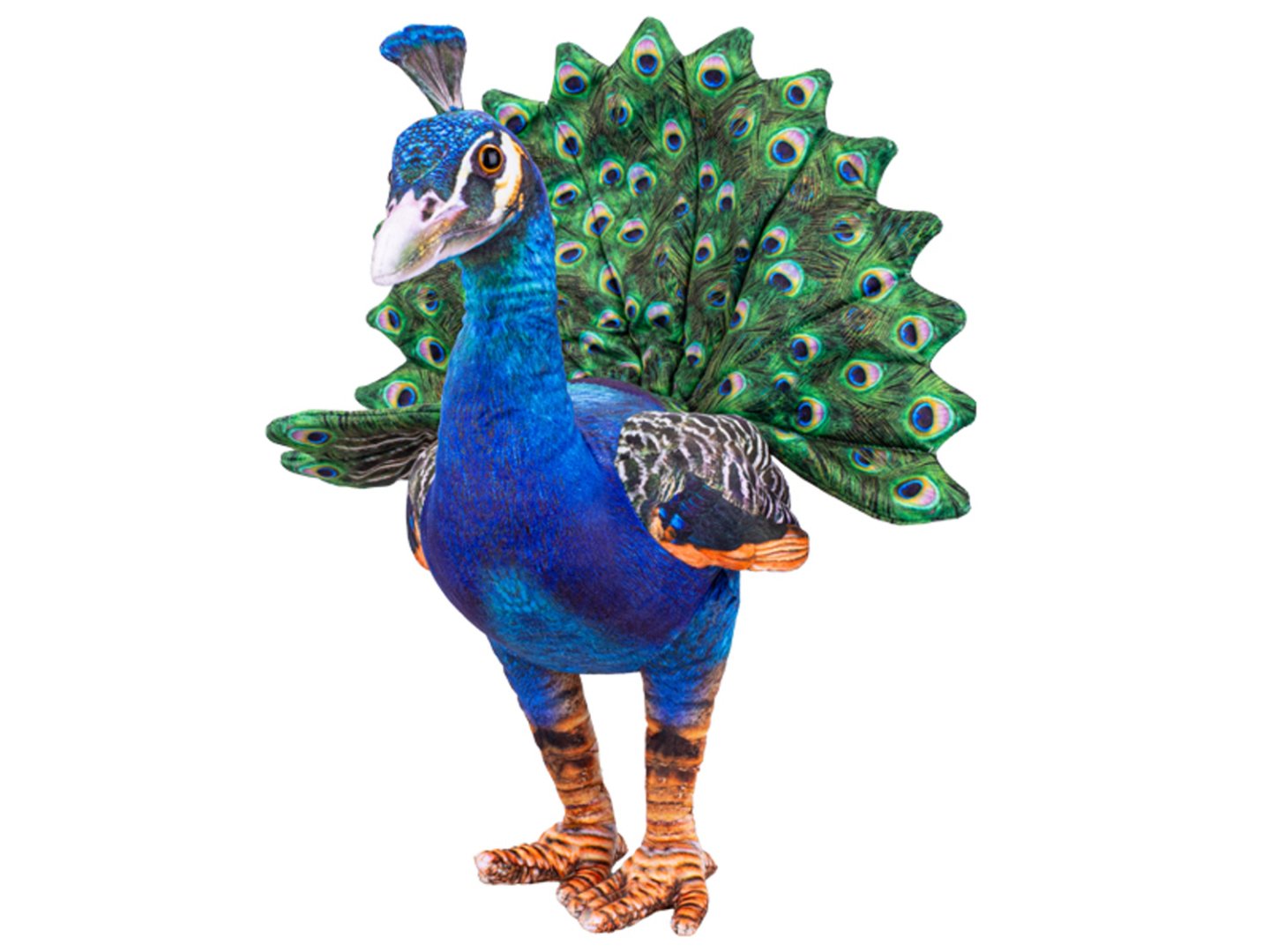 Plyšový páv na první pohled zaujme svým královským postojem a nádhernými barvami! Tento elegantní plyšový kamarád měří 40 cm a je ztvárněn v hrdé stojící pozici, připraven ozdobit každý pokoj. Páv je proslulý svým peřím a náš plyšák není výjimkou! Má nádherně zpracovaný roztažený ocas s bohatými barevnými akcenty, které evokují ikonická paví "očka".