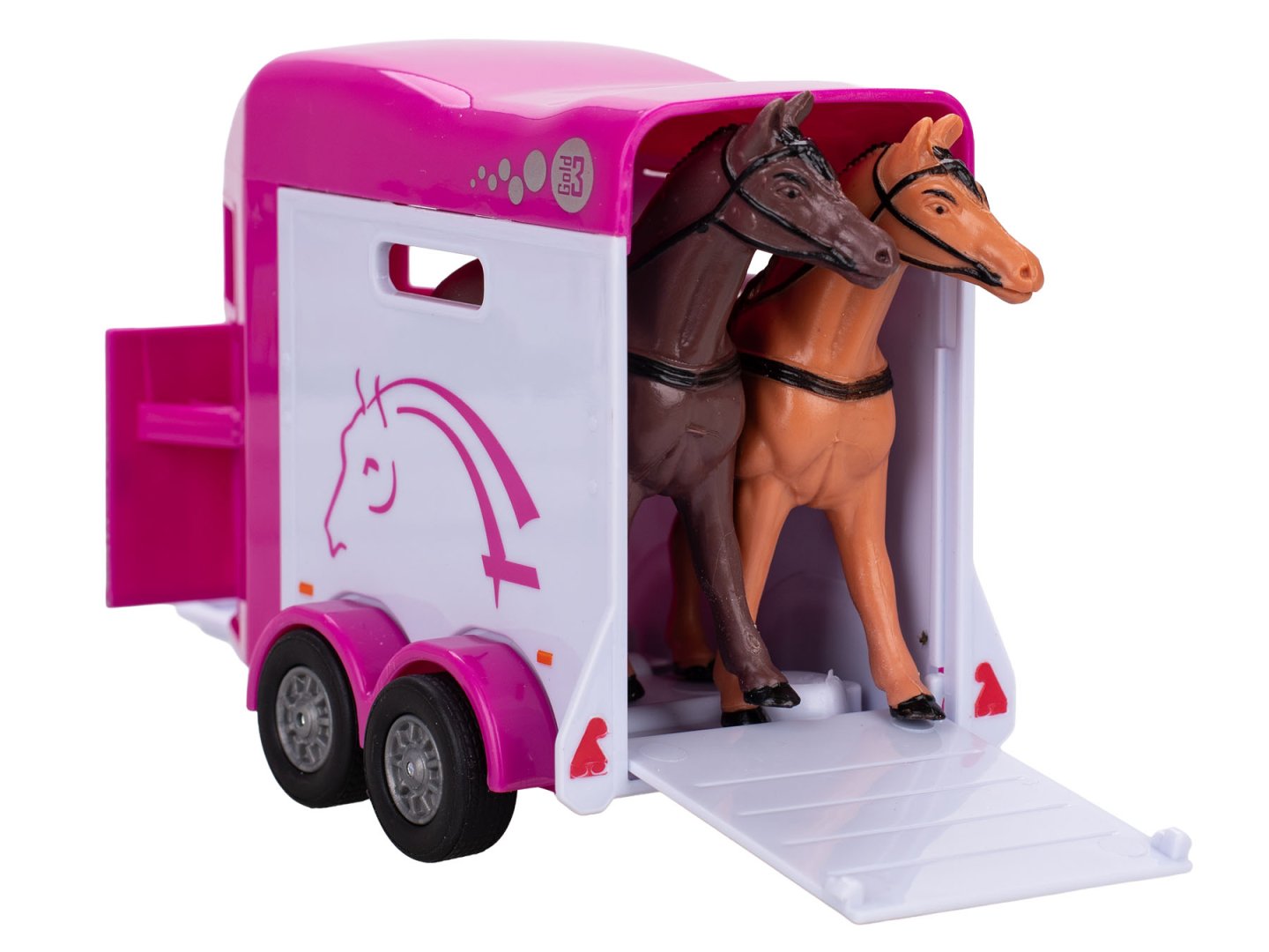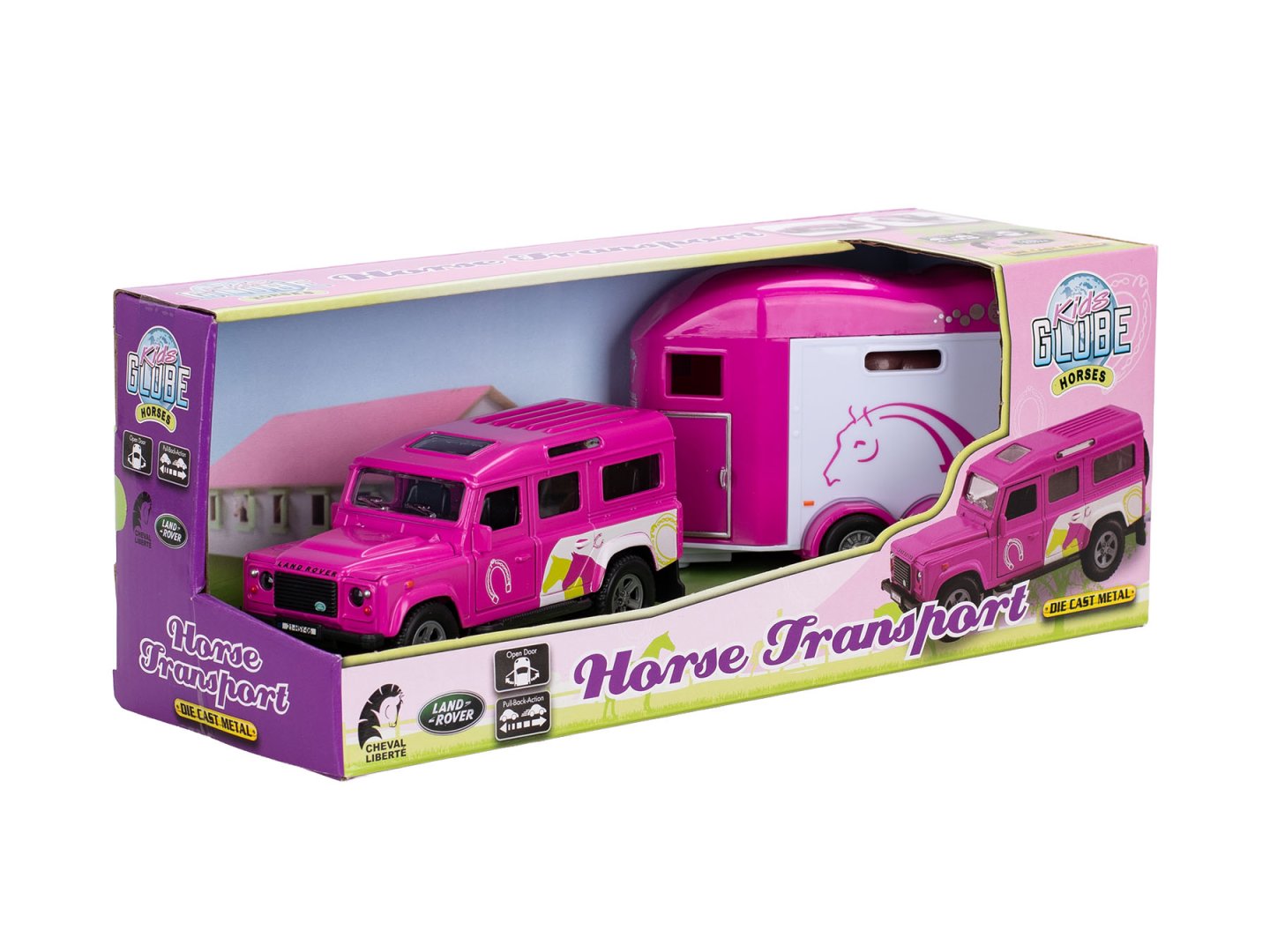 Mikro trading Kids Globe Traffic - Land Rover s přívěsem pro koně - 28 cm - růžová