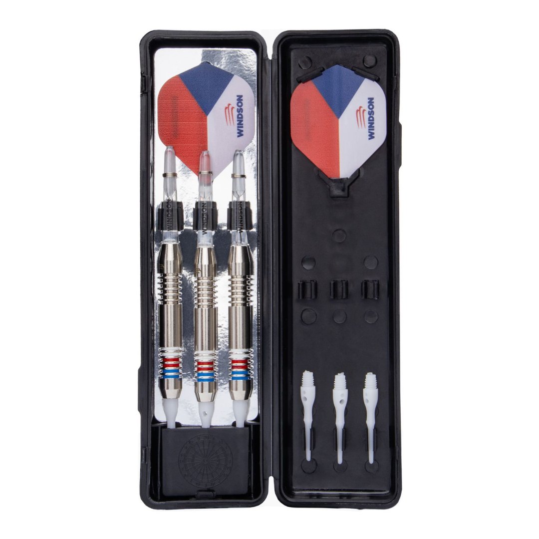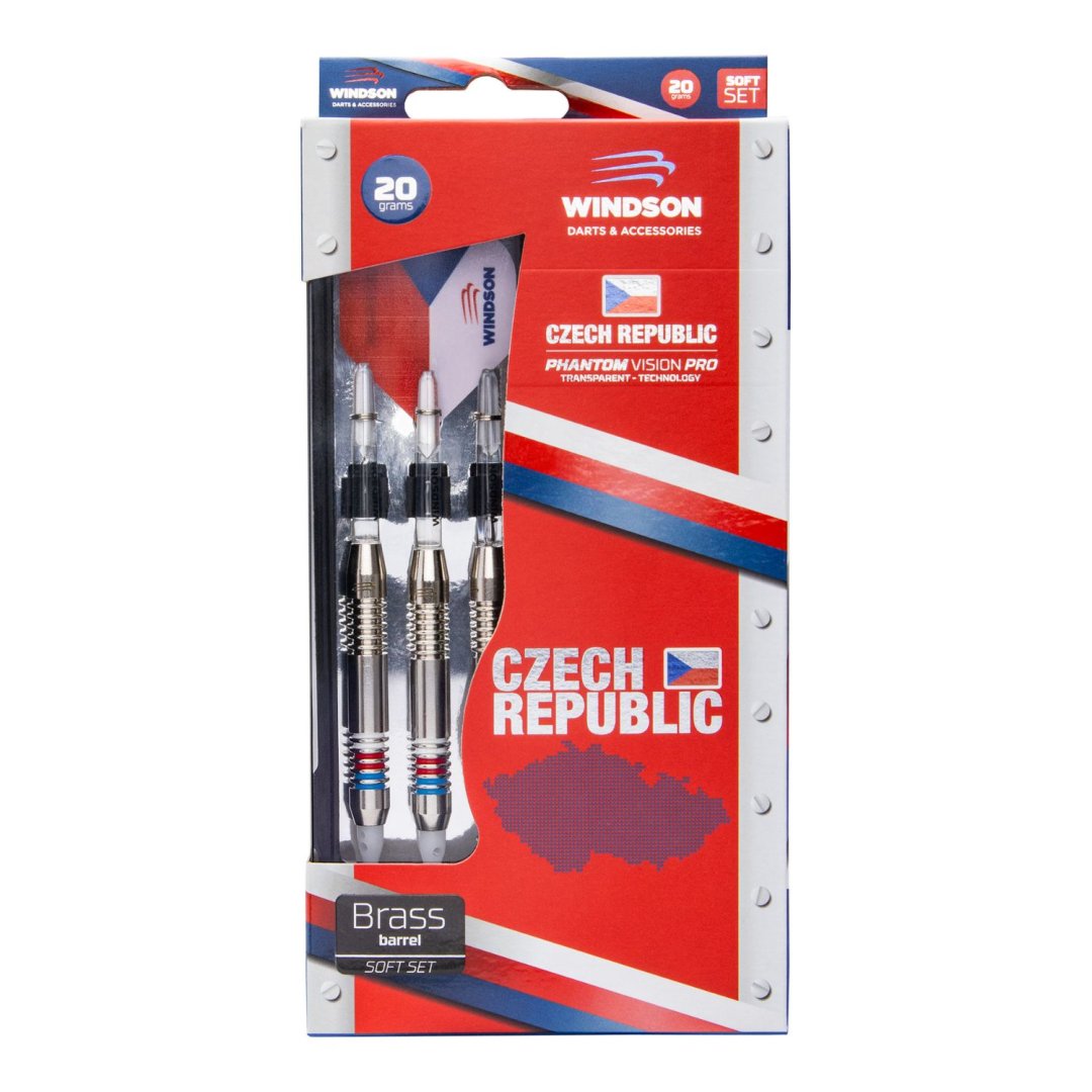 Softové šipky Windson Czech jsou mosazné šipky s barrely, které mají červený, modrý a bílý proužek. Design čerpá inspiraci z české vlajky.
