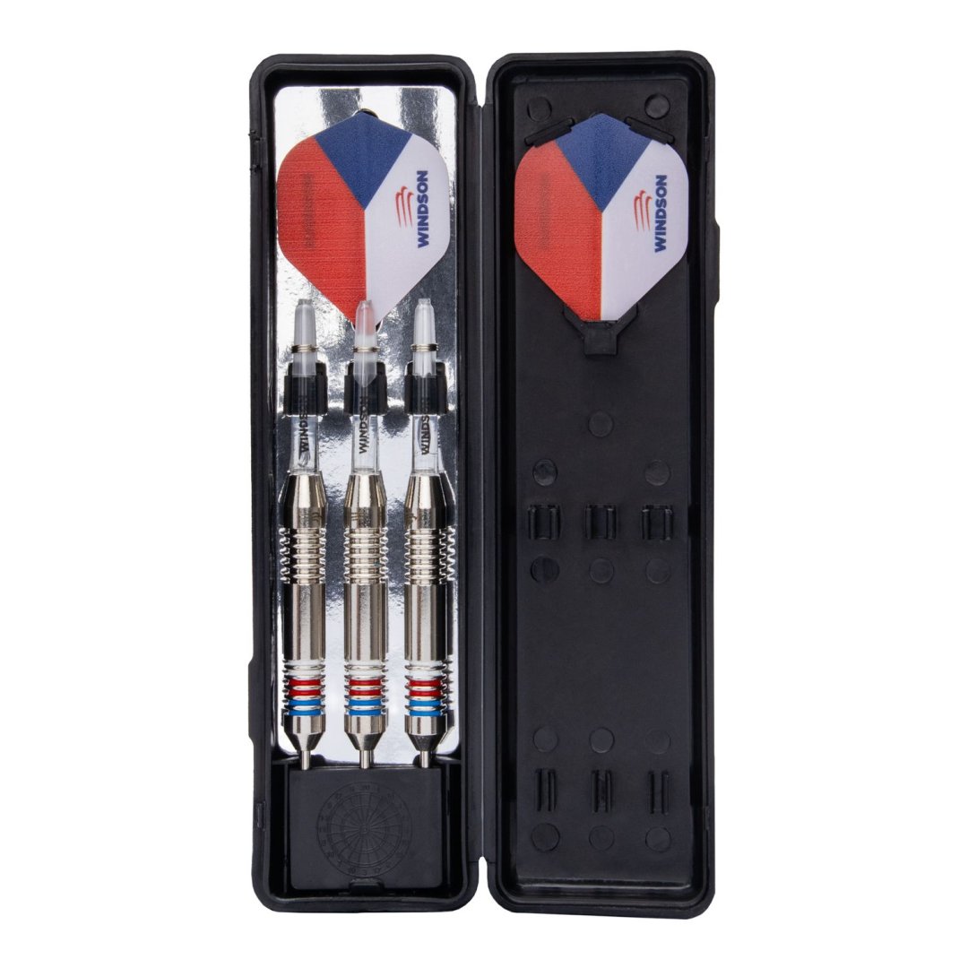 Steelové šipky Windson Czech jsou mosazné šipky s barrely, které mají červený, modrý a bílý proužek. Design čerpá inspiraci z české vlajky. Barrely jsou doplněny nylonovými násadkami a letkami Windson.