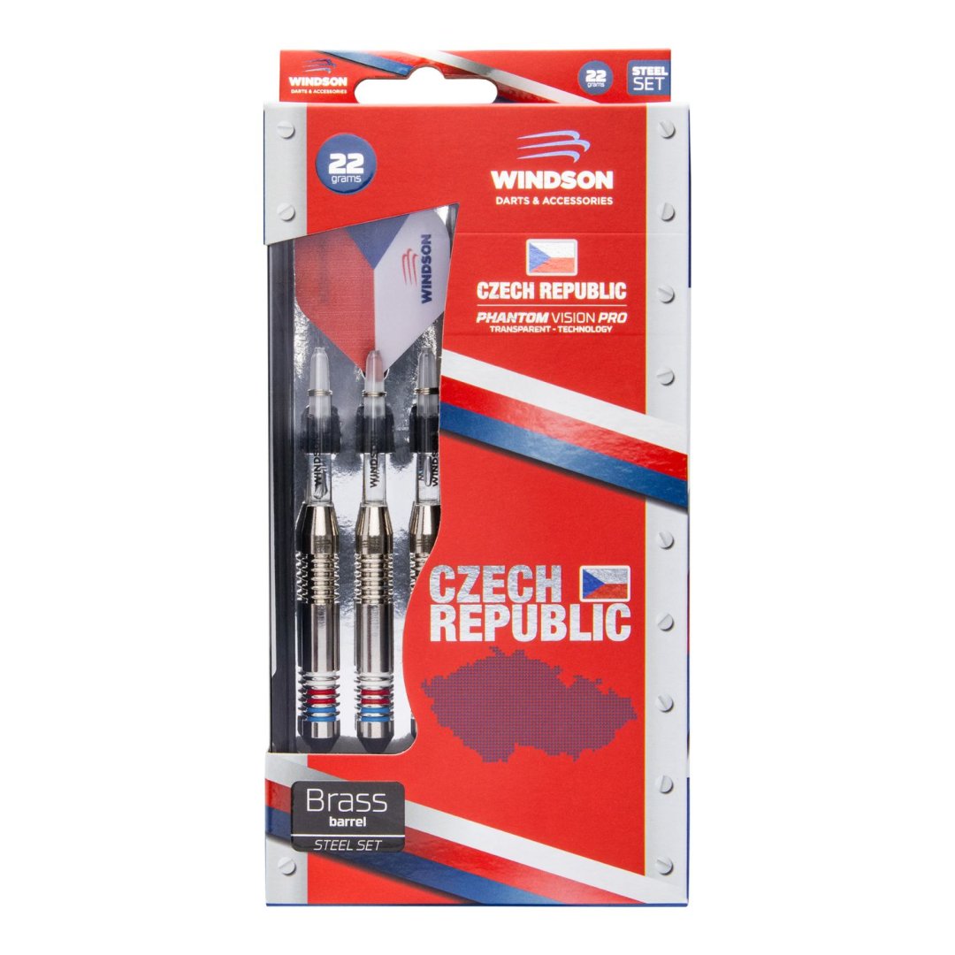 Steelové šipky Windson Czech jsou mosazné šipky s barrely, které mají červený, modrý a bílý proužek. Design čerpá inspiraci z české vlajky.