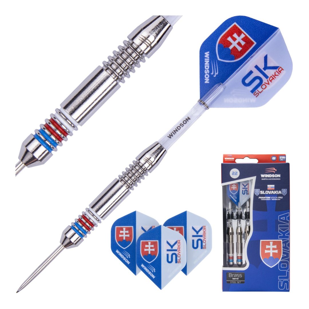 Steelové šipky Windson Slovakia jsou mosazné šipky s barrely, které mají červený, modrý a bílý proužek. Design čerpá inspiraci ze slovenské vlajky.
